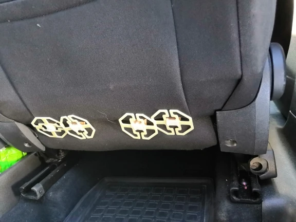 Качество вполне приемлемое, но было только два крючка крепления на два кресла вместо четырёх. Пластмассовые кругляши к моим креслам не подходят. Придётся самому делать неположенные крючки.