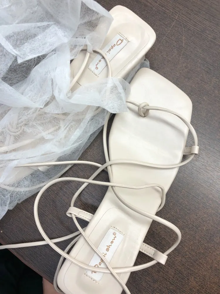 Сандалии женские на низком каблуке, босоножки Гладиаторы с тонкими ремешками, на шнуровке, Повседневная модная летняя обувь