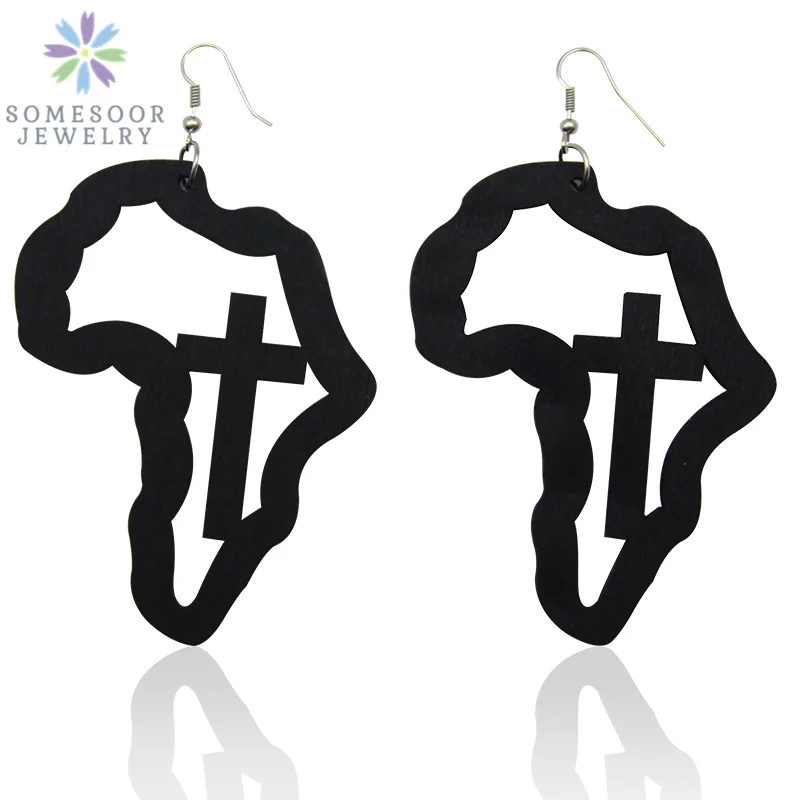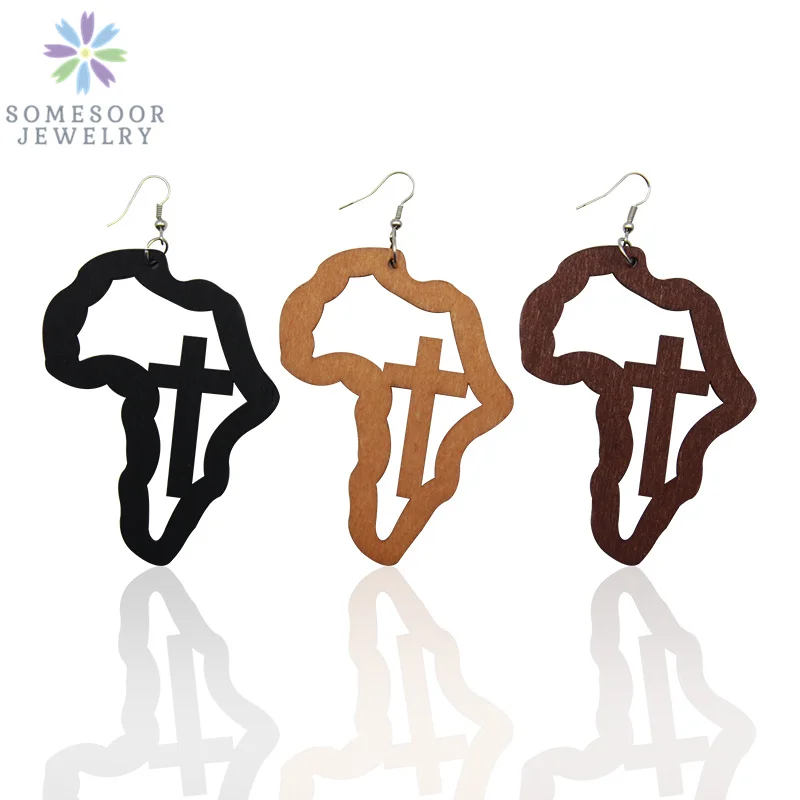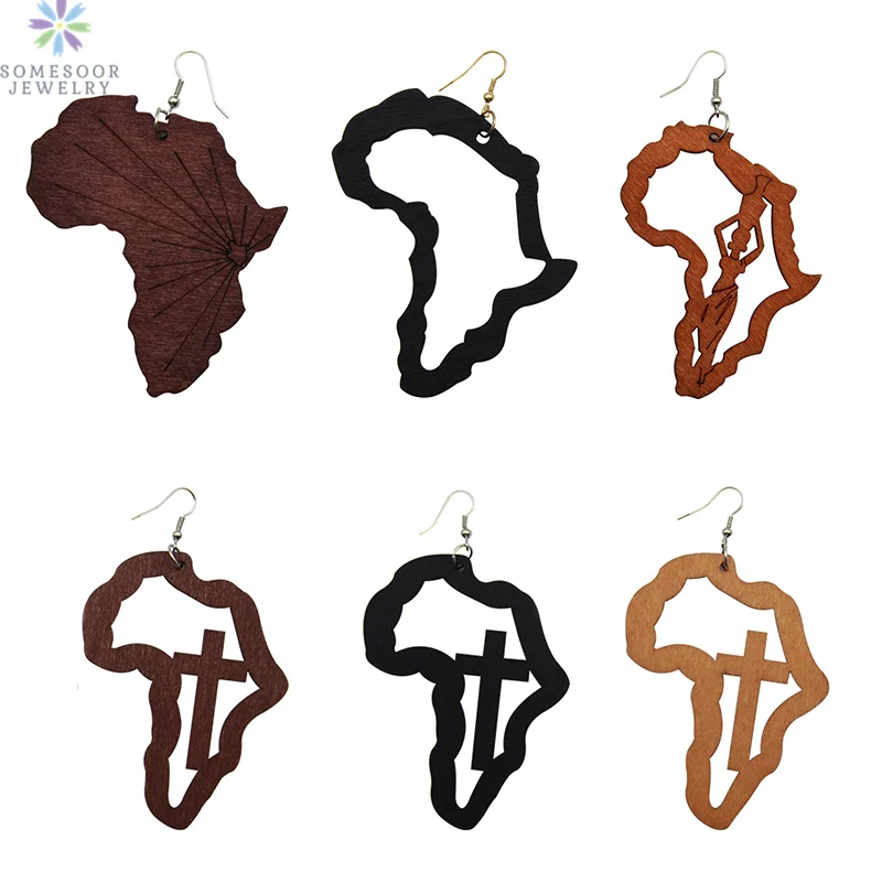 SOMESOOR винтажные деревянные серьги-подвески с Африканской картой, лазерная гравировка, Бог, крест, афроцентрические этнические художественные украшения для женщин, подарки, смешанные 6 пар