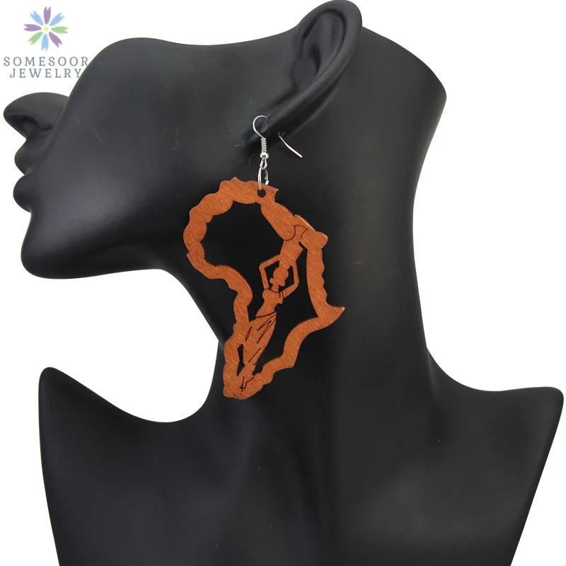 SOMESOOR гравировка африканские деревянные висячие серьги меланин В...
