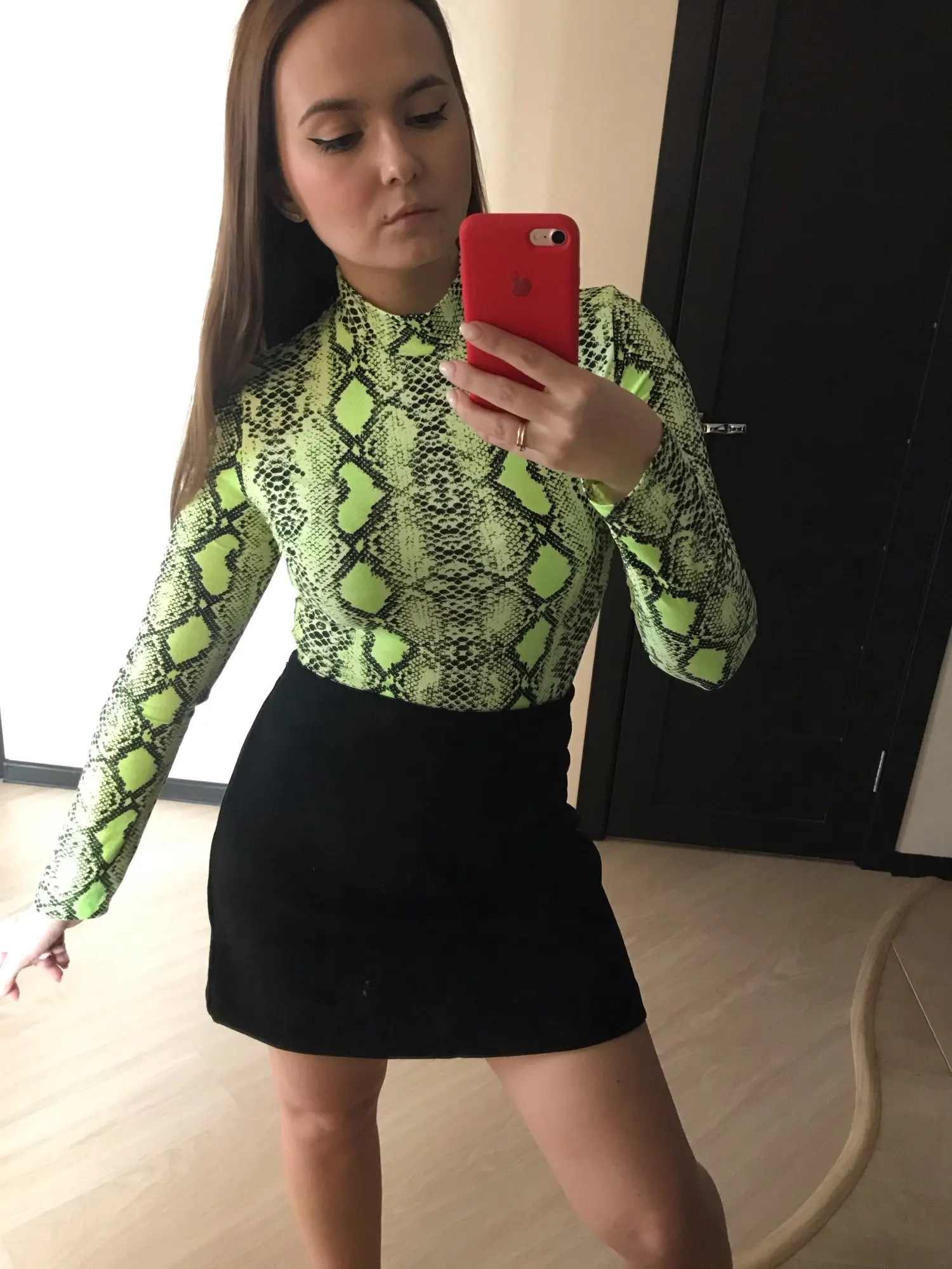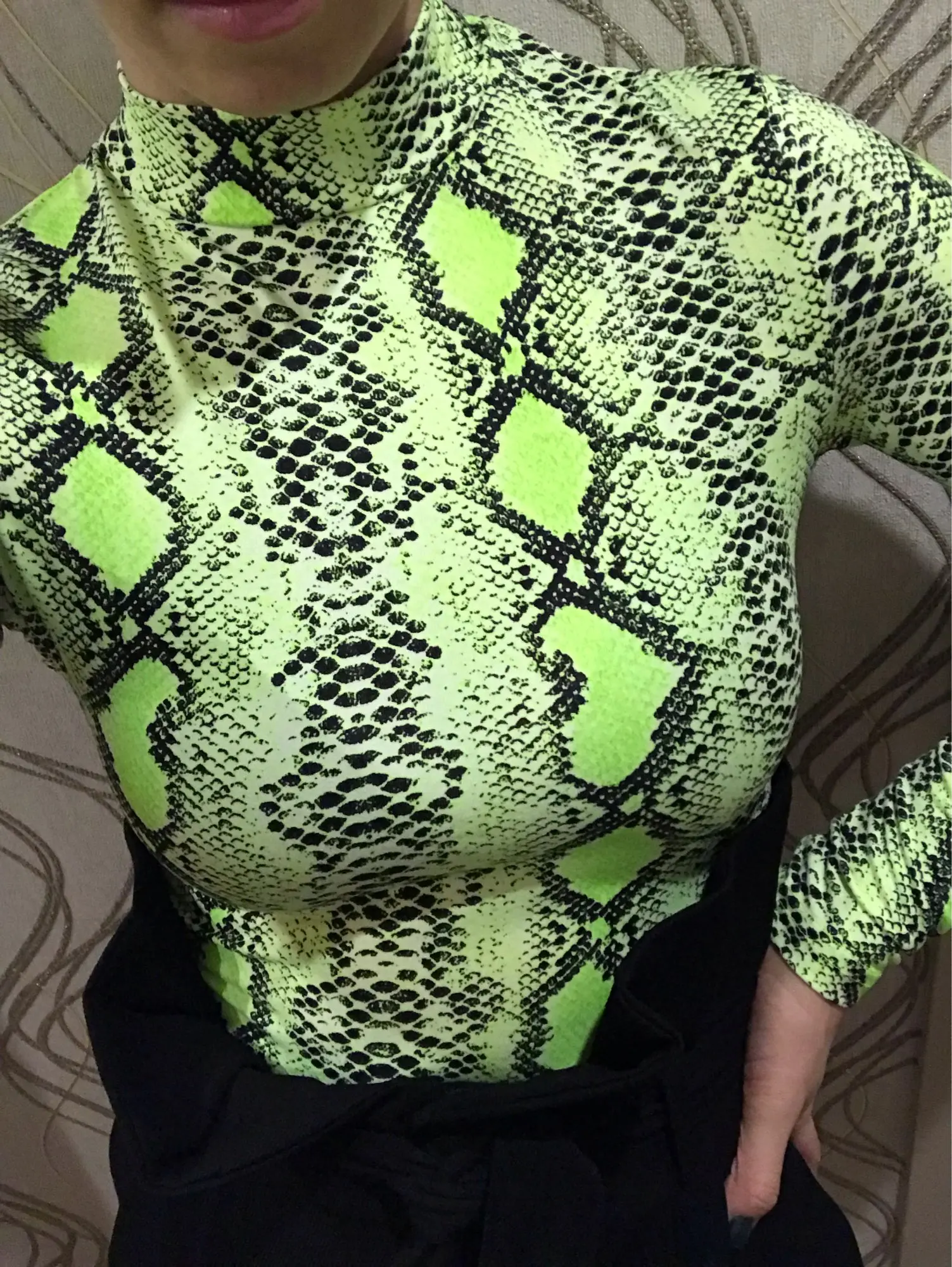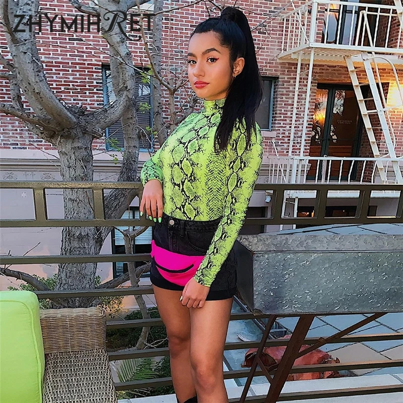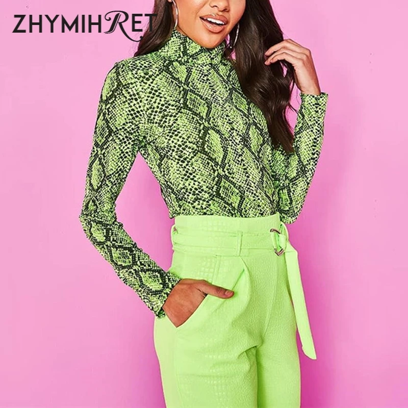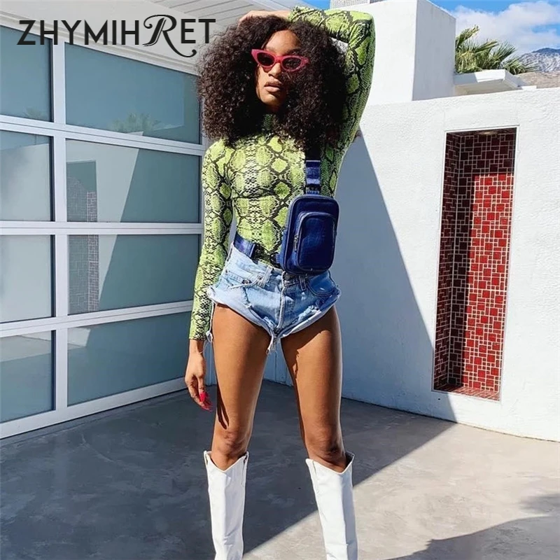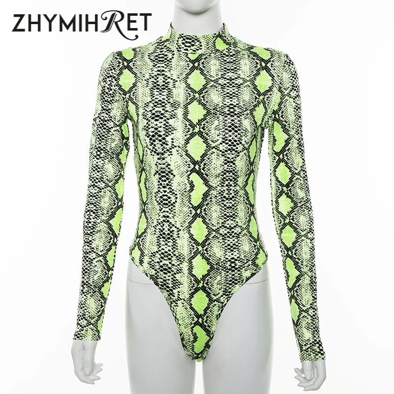Комбинезон ZHYMIHRE, сексуальный неоновый, зеленый, змеиный принт, женский комбинезон с длинными рукавами, круглым вырезом, женский комбинезон, змеиный комбинезон