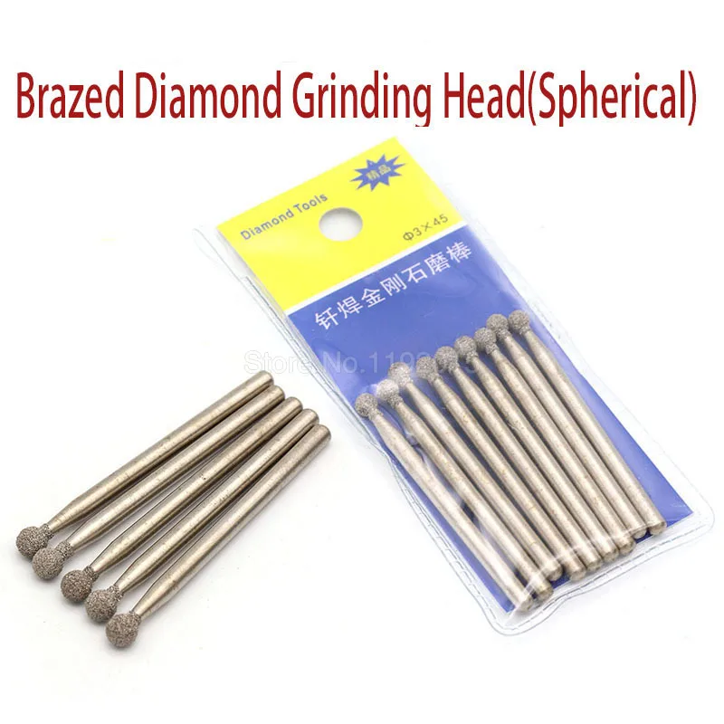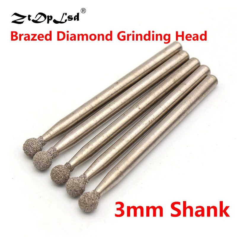 1 шт. 3 мм паяная алмазная шлифовальная головка заостренные биты заусенцы металлический камень нефрит инструменты для гравировки резьбы хвостовик цилиндрический пилинг