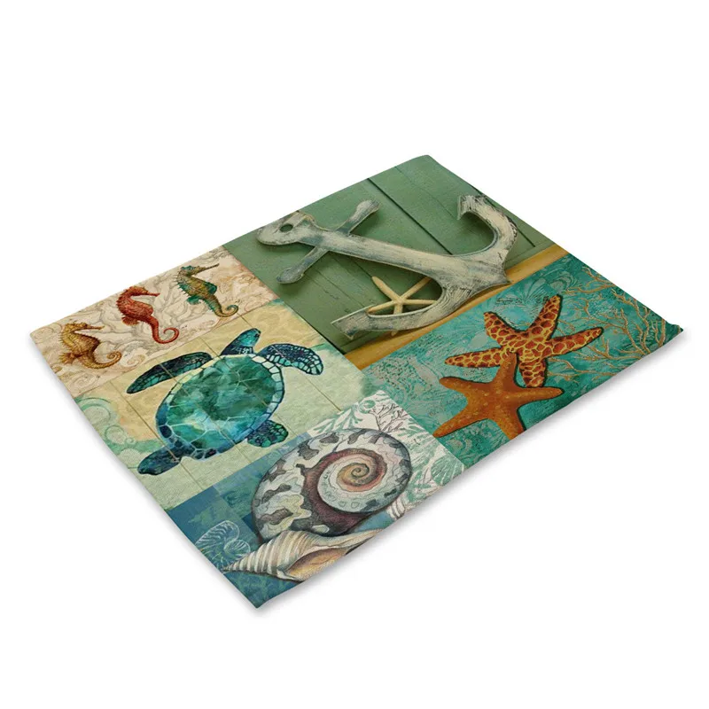 1 шт. кухонная подставка с рисунком морской черепахи и якоря, коврик для стола, подставка для напитков, хлопковая льняная подставка, коврик для чашки, 42*32 см, домашний декор MS0024
