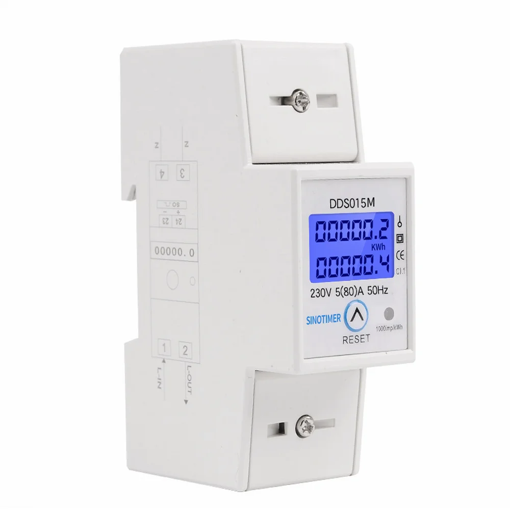 Ваттметр с функцией сброса, однофазный измеритель электроэнергии на DIN-рейке, 5-80 А, 230 В, переменный ток 50 Гц, ватт-измеритель мощности в ваттах