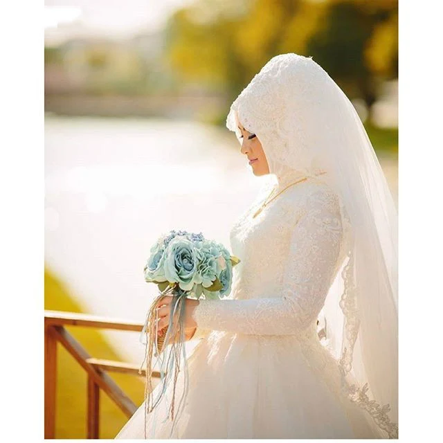 Белое Кружевное мусульманское свадебное платье JIERUIZE с длинными рукавами и высоким воротом