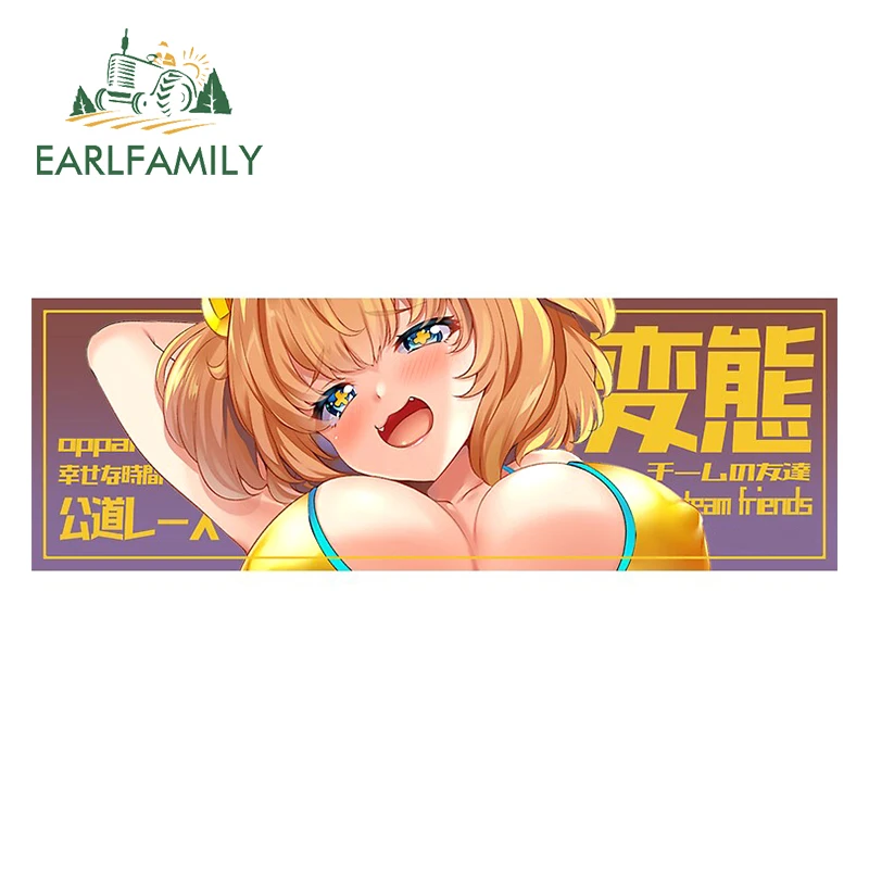 EARLFAMILY О, привет! Наклейка на сиськи аниме, наклейка на автомобиль, мультяшный аниме, Стайлинг автомобиля, наклейка на бампер, окно, JDM, автомобильные аксессуары