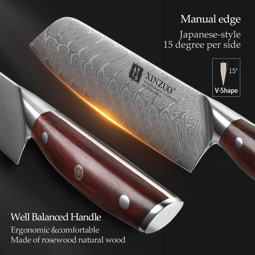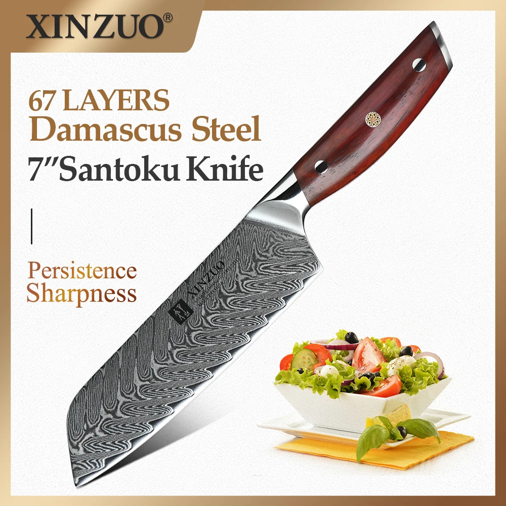 Нож шеф-повара XINZUO, 7 дюймов, из дамасской нержавеющей стали, 67 слоев, с рукояткой из розового дерева