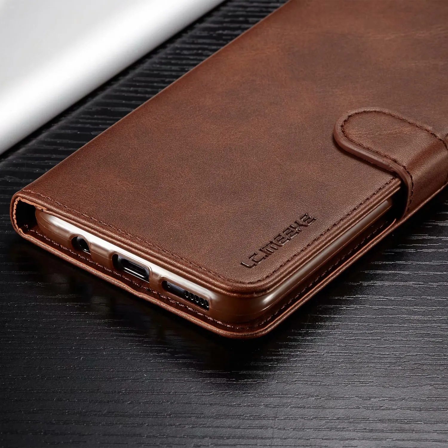 Описание продукта: Этот чехол имеет дизайн «Два в одном» с чехлом-бумажником из искусственной кожи и пластиковой задней крышкой с кожаным покрытием, которая может быть прикреплена вместе магнетизмом. Высококачественные материалы с тонким мастерством обеспечивают элегантный внешний вид и комфорт на ощупь. Чехол-бумажник из искусственной кожи в стиле ретро с масляной стороной Три отделения для карт и карман для денег Подножка, чехол с откидной магнитной крышкой Металлическая защелкивающаяся застежка обеспечивает безопасность Более высокая губа для оптимальной защиты объектива камеры