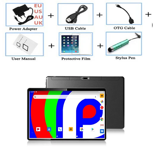 Экран 10,1 дюйма 5 точек 2.5D IPS емкостный сенсорный экран Разрешение 1280*800 пикселей Процессор MT6580 Quad Core RAM 1,5 GB Nand Flash 32 Гб Веб-камера Передняя 2.0MP, задняя 5.0MP камеры Беспроводной Wi-Fi 802,11 b/g 2G GSM 850/900/1800/1900 МГц 3G WCDMA 2100 МГц GPS да, A-GPS Bluetooth Да Литий-ионный аккумулятор 3000 мАч Время работы видео 4-7 часов Вход адаптера устройства питания 100-240 в, Гц, выход 5 в-2а Спецификация устройства Цвет черный, золотой, серебряный, синий Размеры x мм Вес нетто 0,65 кг Поддержка программного обеспечения Офисная поддержка MS Office Word, PPT, Excel Электронная почта, POP3/SMTP/IMAP4 Другие QQ ,skype... Мультимедиа Видео AVI, MP4, FLV, 3GP, MKV, WMV и т. Д. Аудио MP3,WMA,WAV,APE,FLAC,AAC,OGG и т. д. Изображение JPG/BMP/PNG/GIF. Электронная книга PDF, TXT и т. д. Порт 1 слот Micro USB 1 слот для карты TF 2 слота для SIM-карты 1 х разъем для наушников Посылка 1 x планшетный ПК 1 x Руководство пользователя 1 зарядное устройство Вес 1,2 кг Кожаный чехол и чехол для клавиатуры (английский и русский)