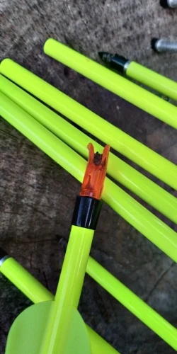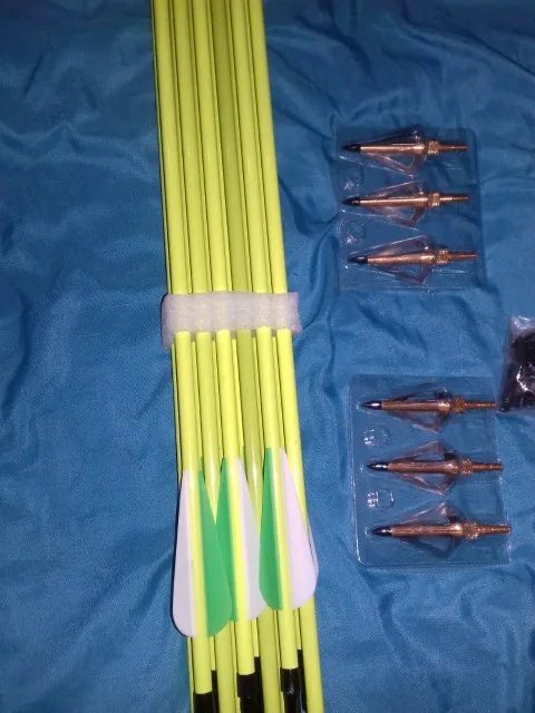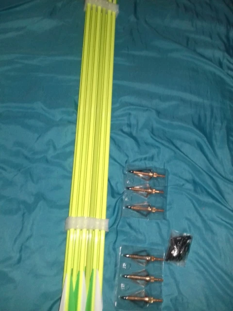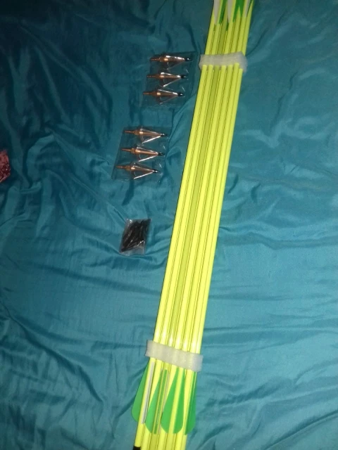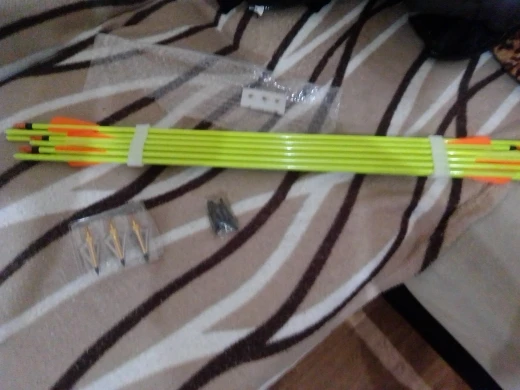 Стрелы не плохие за свою цену. Наконечники получил. Упаковано было плохо. Оперения помялись.