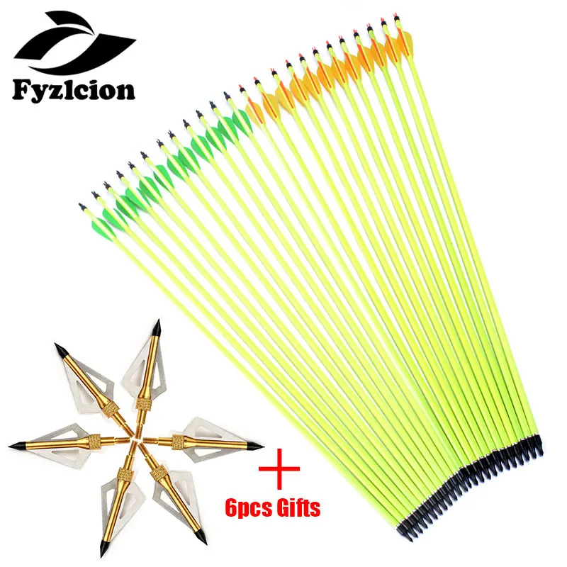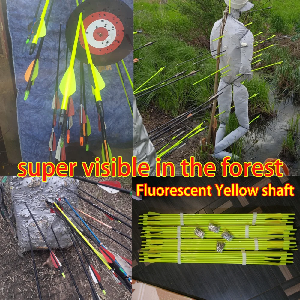 Охотничий стрельба из лука, 12 шт., 30 дюймов, флуоресцентный желтый лук, углеродная стрела + 6 шт. стрел, наконечники для стрел