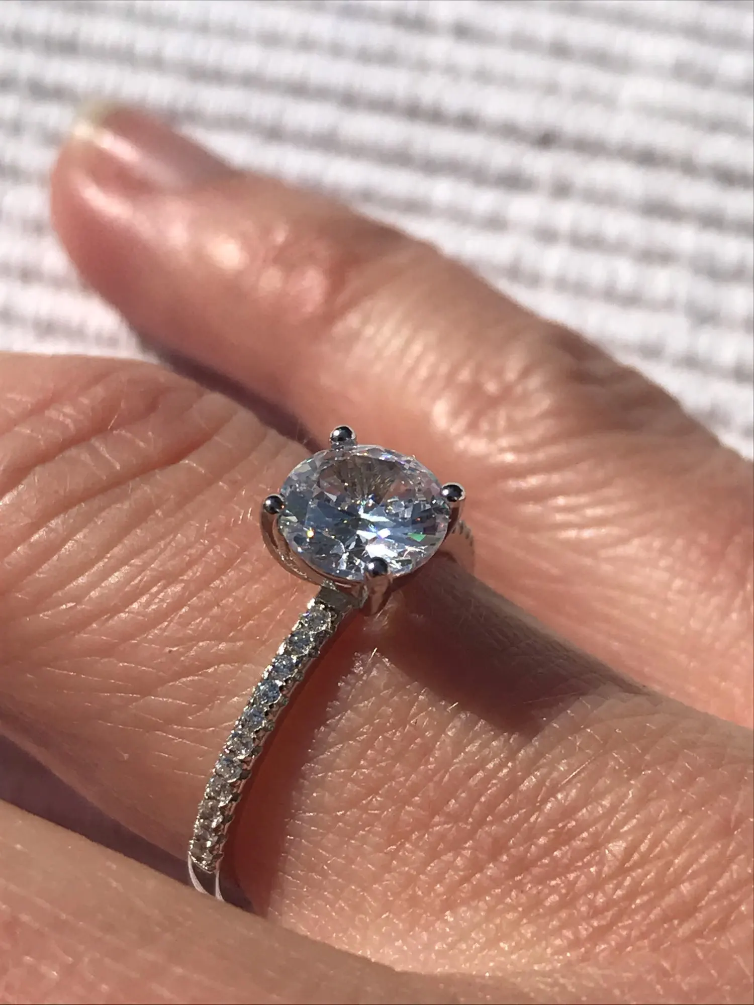 Кольцо хорошее. Сверкающий. Обычно я ношу размер 6,5, поэтому я купил размер 6, и он все еще немного свободный, но это нормально.