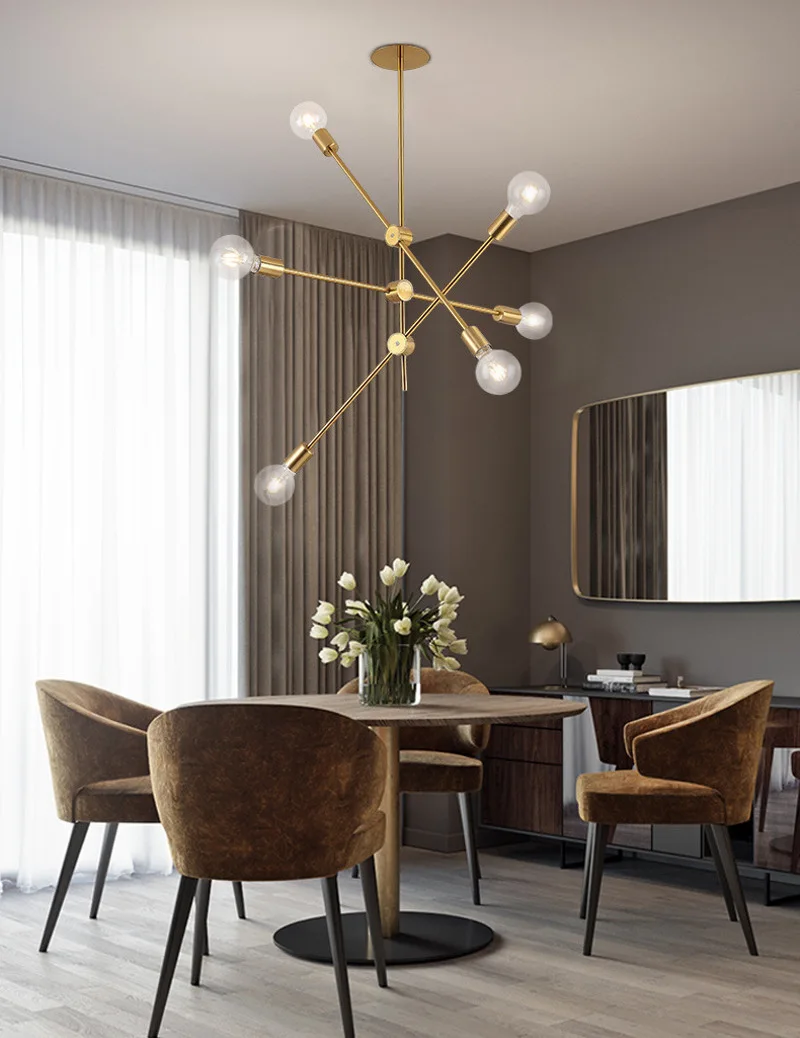 Металлическая прочная конструкция, простая установка, безопасная в использовании Геометрический внешний вид линии, уникальный и креативный декор в комнате. Подарите в свой дом высокую и теплую красоту, создайте прекрасную атмосферу обитания. Материалы: металл. Цвет: полированное золото (гальваническое покрытие)/матовая латунь Напряжение: 95 ~ 265 В; Розетки: цоколь лампы E27 (лампа в комплект не входит). Подходящий тип лампы: можно использовать CFLs и светодиодный ные лампы. Но мы рекомендуем использовать светодиодные лампы Е27 мощностью менее 5 Вт для экономии энергии и длительного срока службы. Светильник нельзя использовать в угловых потолках, так как подвесную ветку приходится прикручивать к потолочной пластине, а угол фиксируется. Предлагаемый размер площади: 20-25 кв. М. Это идеальный светильник для установки на кухне, столовой, гостиной, фойе и многое другое. 4 розетки: Диаметр: 63 см/25 дюймов (Обратите внимание: 2 дужки одинаковой длины: 75 см/29,52 дюйма) Высота корпуса лампы: 82 см/32,3 дюйма Вес: 1,5 кг 6 розеток: Диаметр: 63 см/25 дюймов (Обратите внимание: три дужки одинаковой длины: 75 см/29,52 дюйма) Высота корпуса лампы: 82 см/32,3 дюйма (регулируется) Вес: 1,6 кг Размер посылка: 105x31x15 см Подвесная Золотая Модель:Золотой корпус, используйте подвесную проволоку вместо стрелы для подключения потолка Подвесные бруски из латуни Модель:Матовый латунный корпус, используйте подвесную проволоку вместо стрелы для подключения потолка Подвесная модель, лампа подключается к потолку с помощью подвесного провода длиной 1 метр, подходит для домов с высокими потолками. Длина кабеля: 1 метр Посылка: 1 люстра, 1 мешок для фурнитуры, 1 руководство ПРИМЕЧАНИЯ по безопасности: Не включайте перед сборкой. Если вы хотите поменять лампочки, пожалуйста, выключите и после того, как лампочка холодная. Мы рекомендуем Вам обратиться напрямую к профессиональному электрику для получения помощи, если вы не понимаете, как установить.