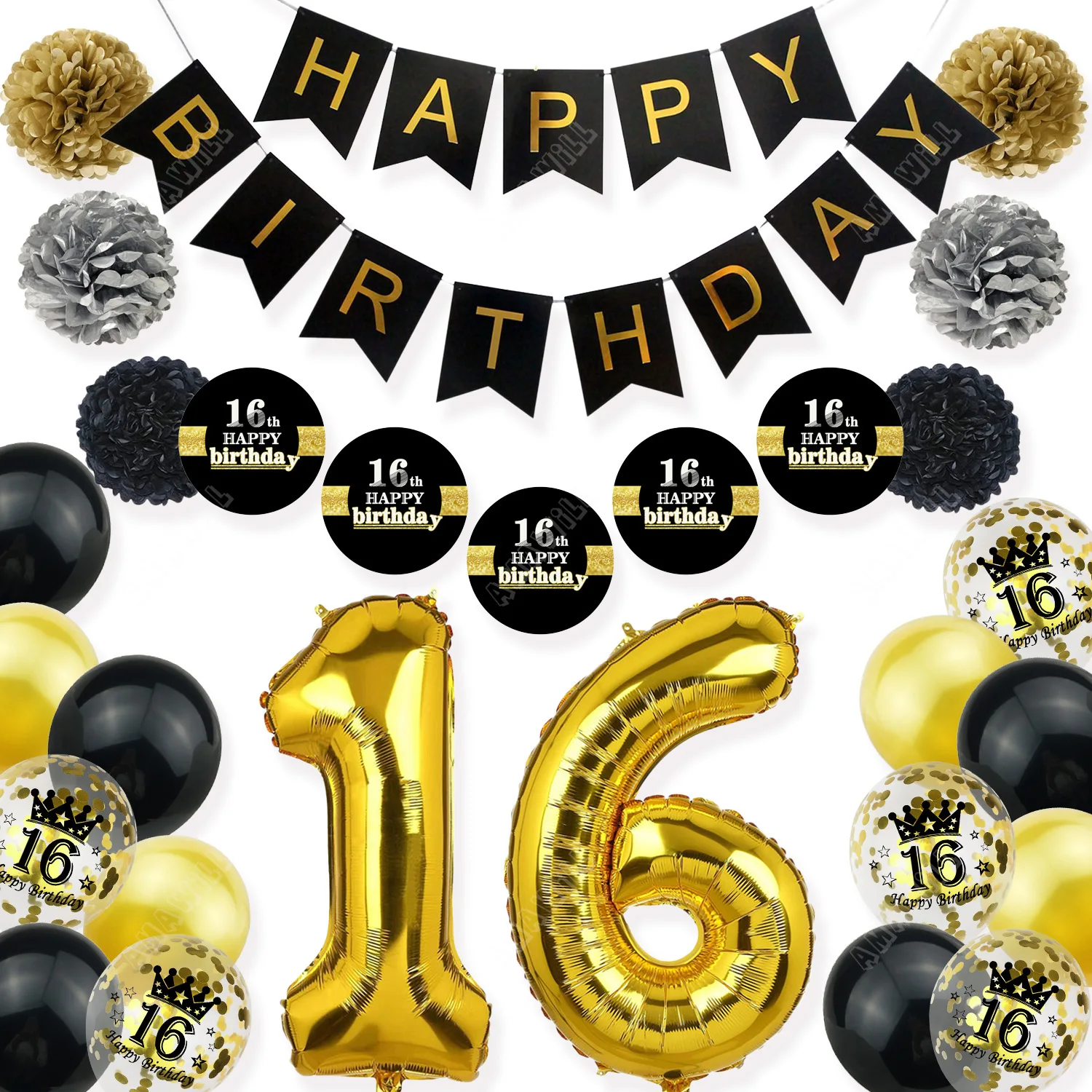 Amawill Cheers 16 лет вечерние принадлежности золотой номер 16 фольги воздушный шар бумажный баннер с 16 днем рождения комплект украшений для вечеринки 7D