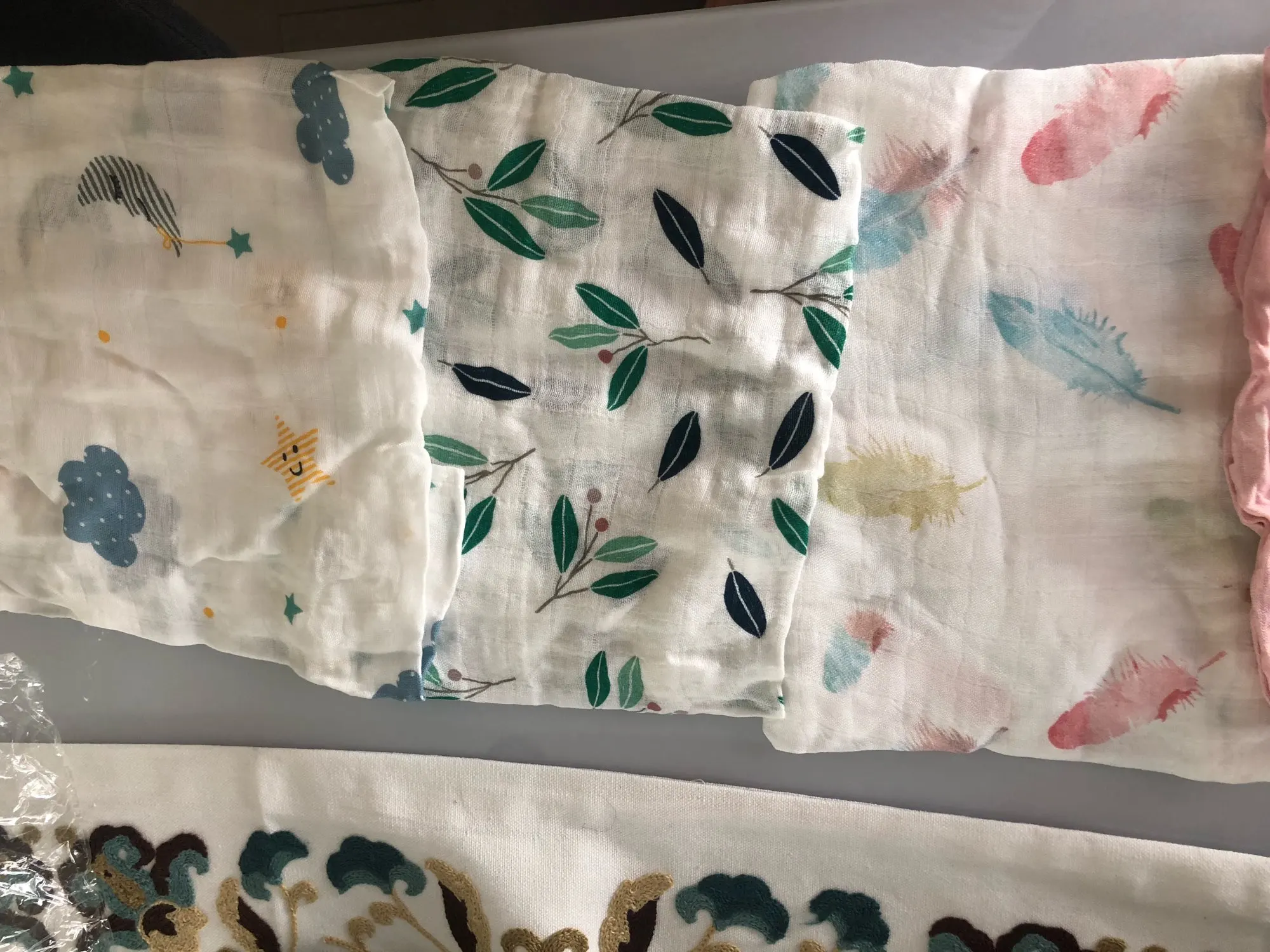 Обожаю материал. Очень мягкий и легкий. Идеально подходит для лета, для теплой погоды. Очень нравится узор. Я очень доволен своей покупкой. Не могу дождаться использования с моим ребенком. Спасибо продавцу!