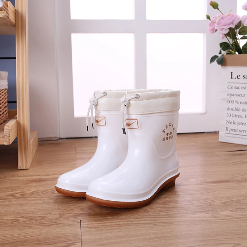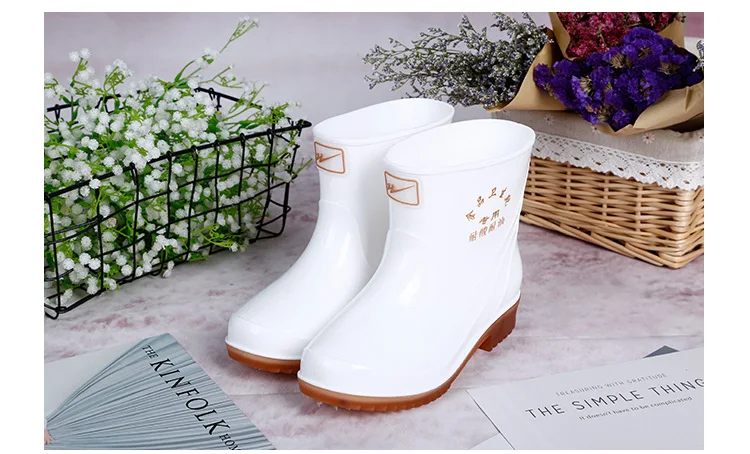 Женские резиновые сапоги средней высоты, уличная нескользящая обувь, белые галоши, столовые резиновые сапоги 39-44, Женская весенняя обувь