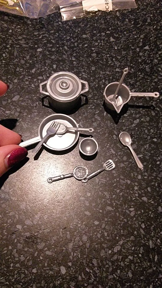 Товар включает: мини-нож и вилка; комплект из 12 предметовНе полный размер, только для кукольного домика 1/6 1/12