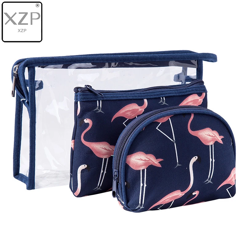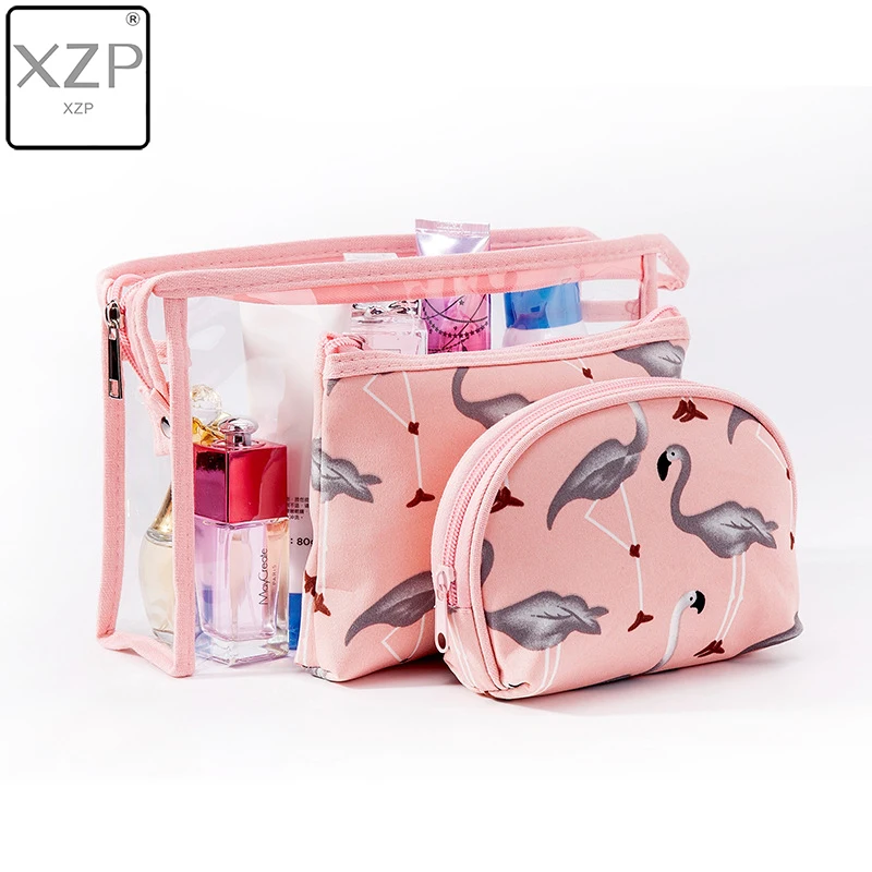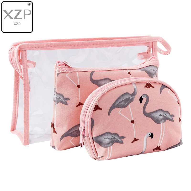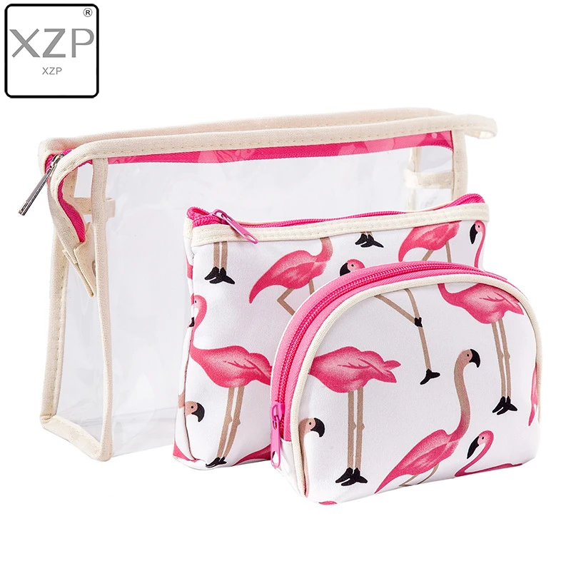 Новое поступление, косметичка XZP с фламинго для женщин, несессер, косметичка для путешествий, водонепроницаемая портативная косметичка, наборы туалетных принадлежностей из ПВХ, 3 шт.