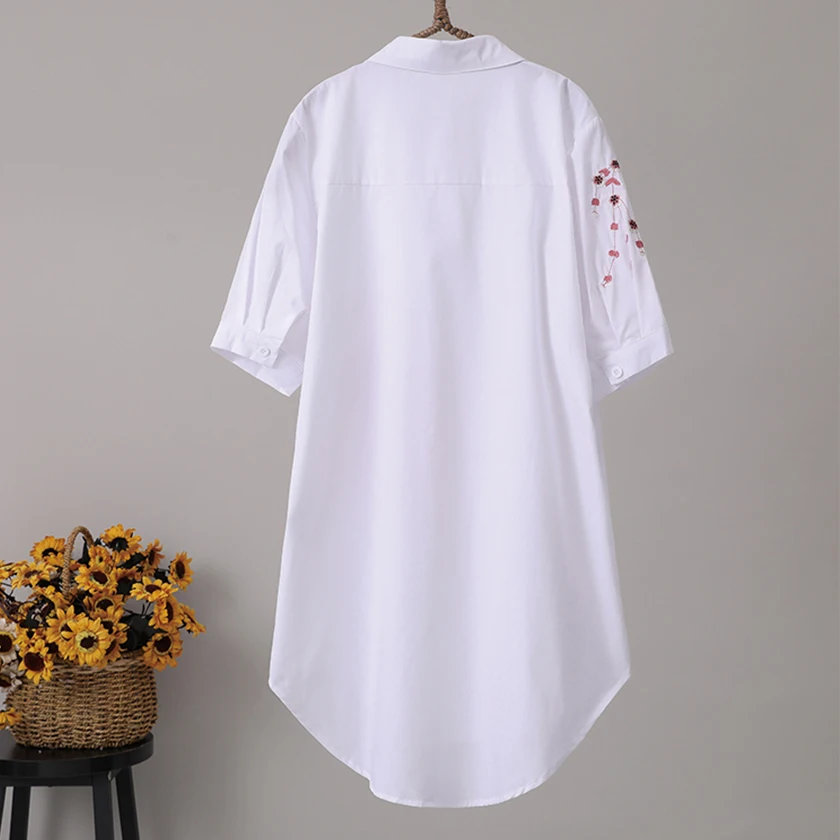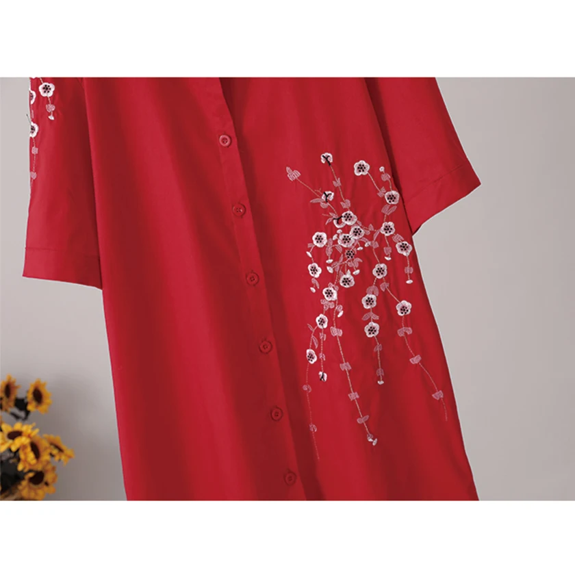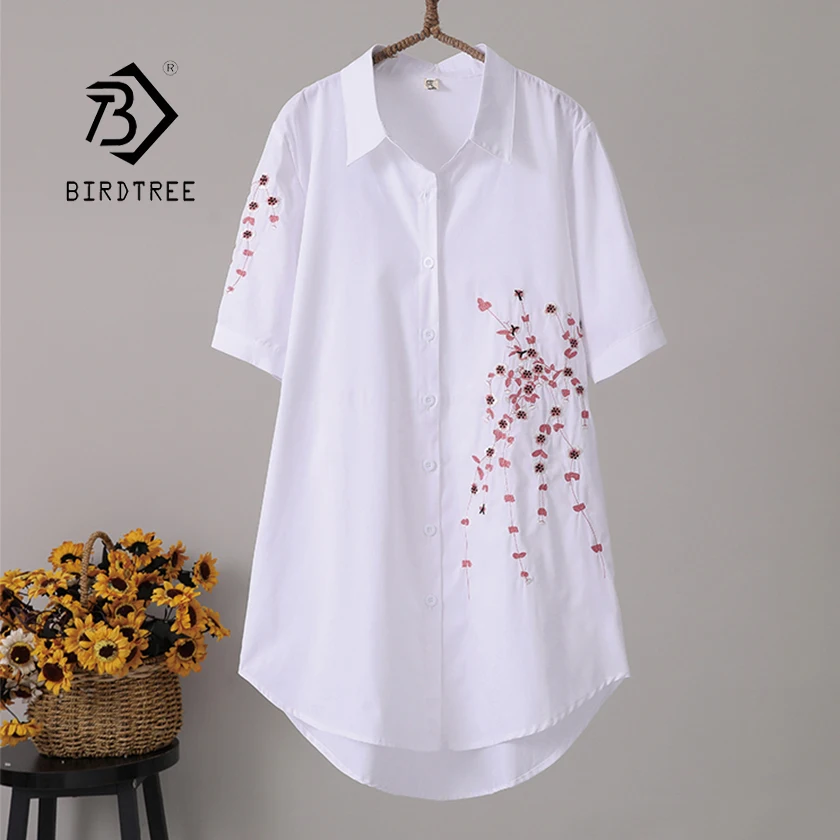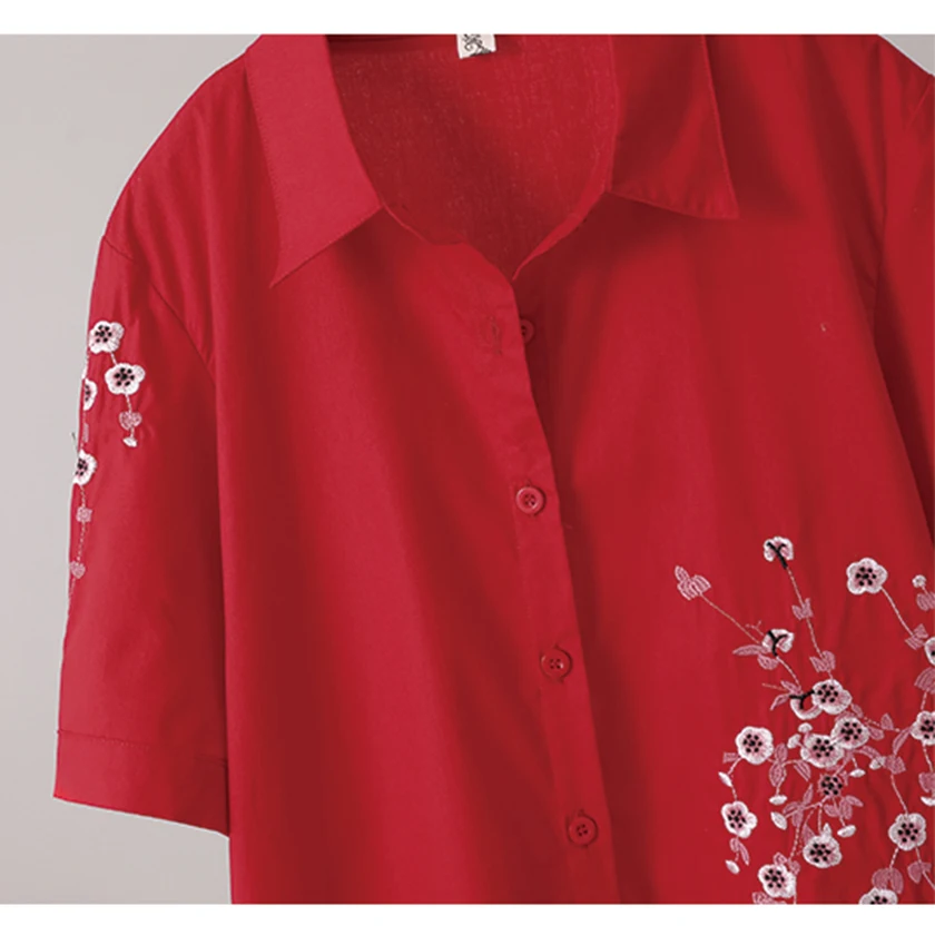 Блузка женская хлопковая с цветочной вышивкой, с коротким рукавом, T96408F