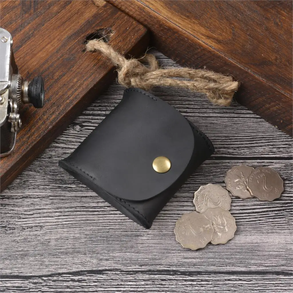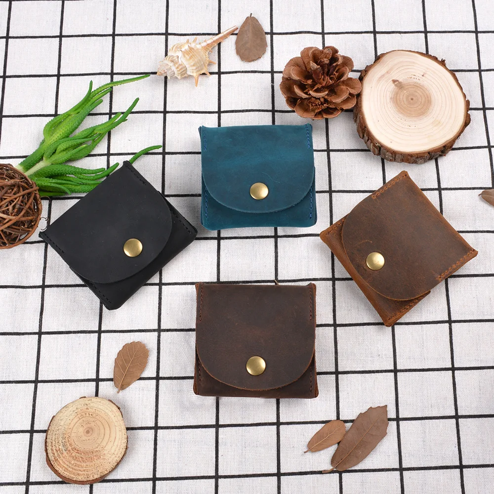 Винтажный мини-кошелек из натуральной кожи, креативный квадратный ретро держатель для монет, маленький бумажник