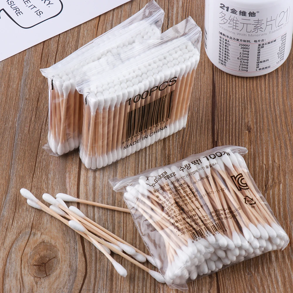 200 шт деревянные 100% ватные палочки двойной наконечник аппликатор ватный тампон для носа Чистка ушей, средство для ухода за полостью