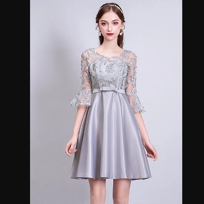 ASL53 # серые цвета шампанского розовые платья для подружек невесты короткие кружевные платья для новой сестры для свадьбы банкета выпускного вечера Оптовая Продажа для девочек