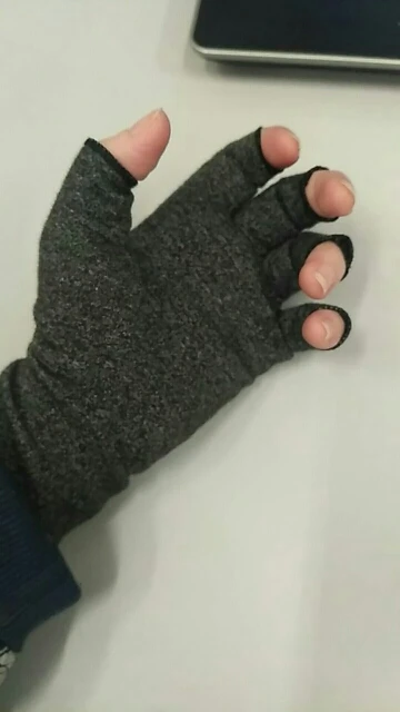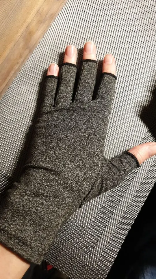 Мы довольно быстро получили наши перчатки в Канаде. У моего hubby есть маленькие руки, поэтому мы выбрали M. Они плотно сидят на нем. Но именно поэтому это компрессионные перчатки. Помогает ли это артрит, которого мы еще не знаем. Дополнительная обратная связь позже.