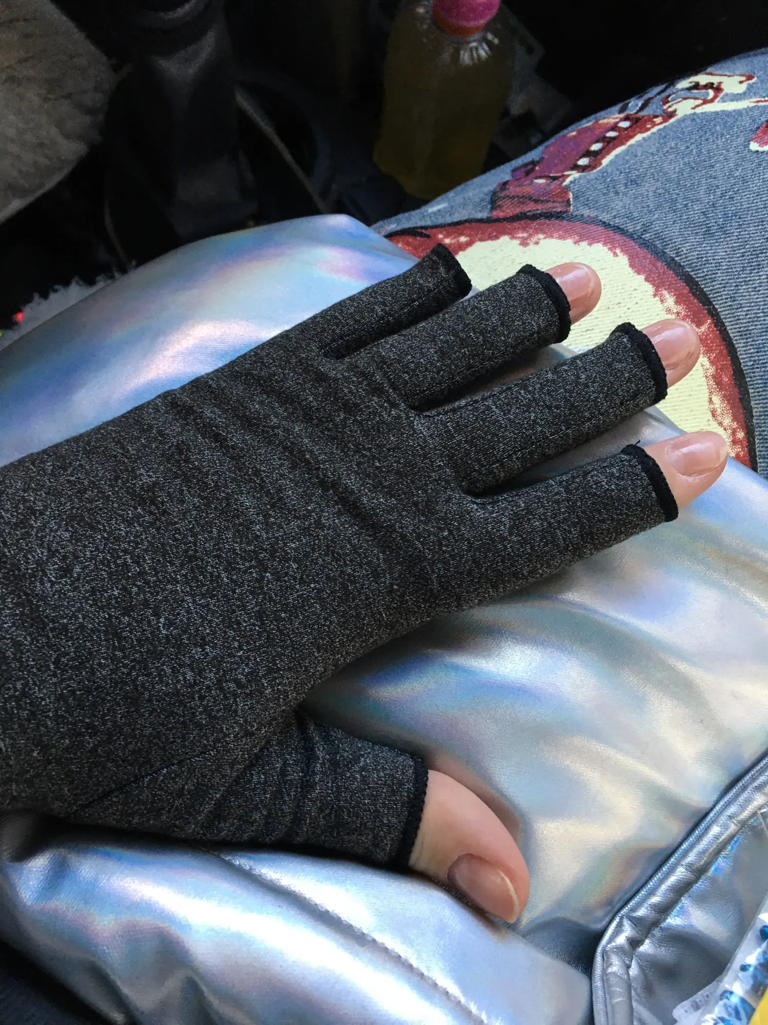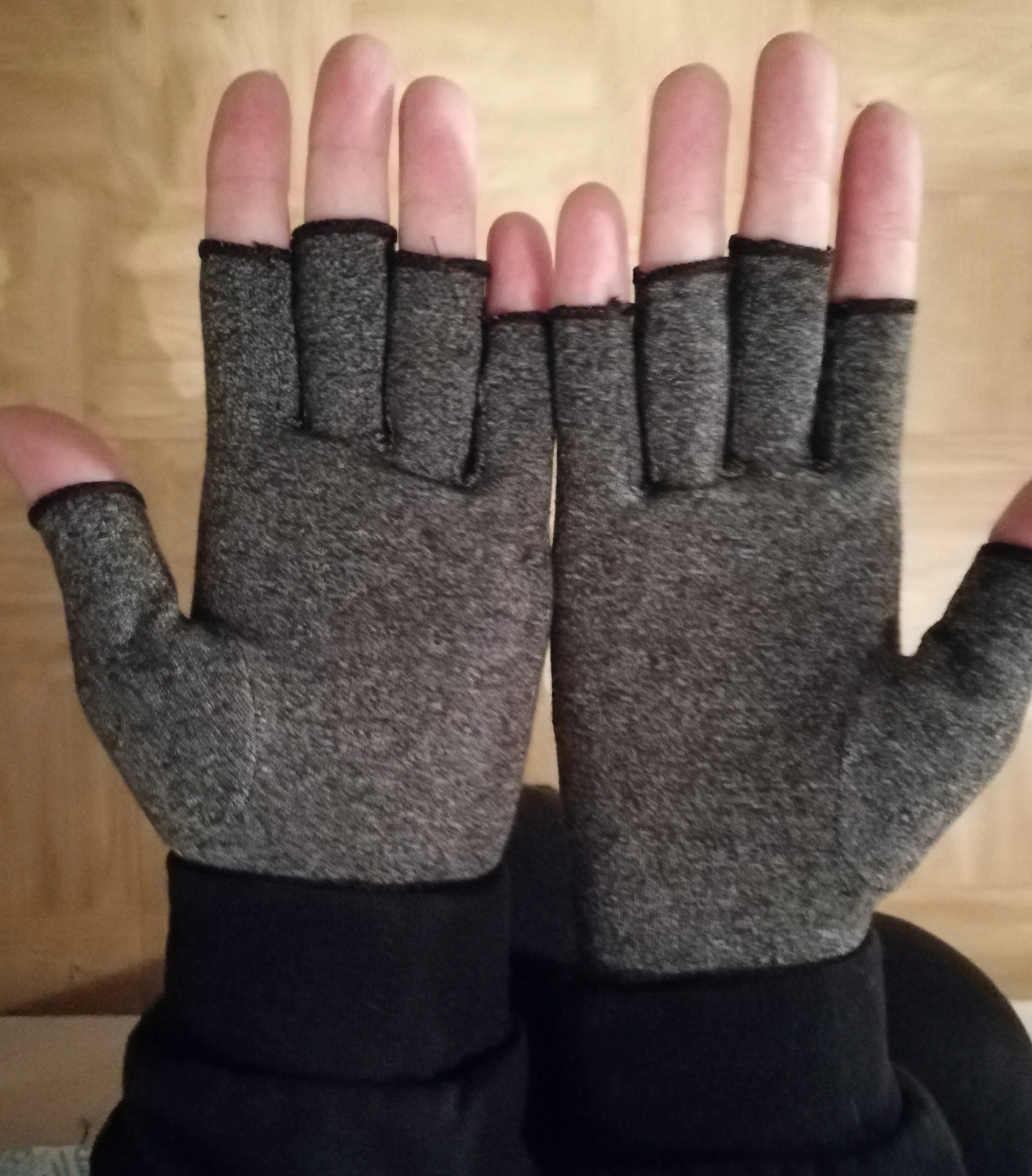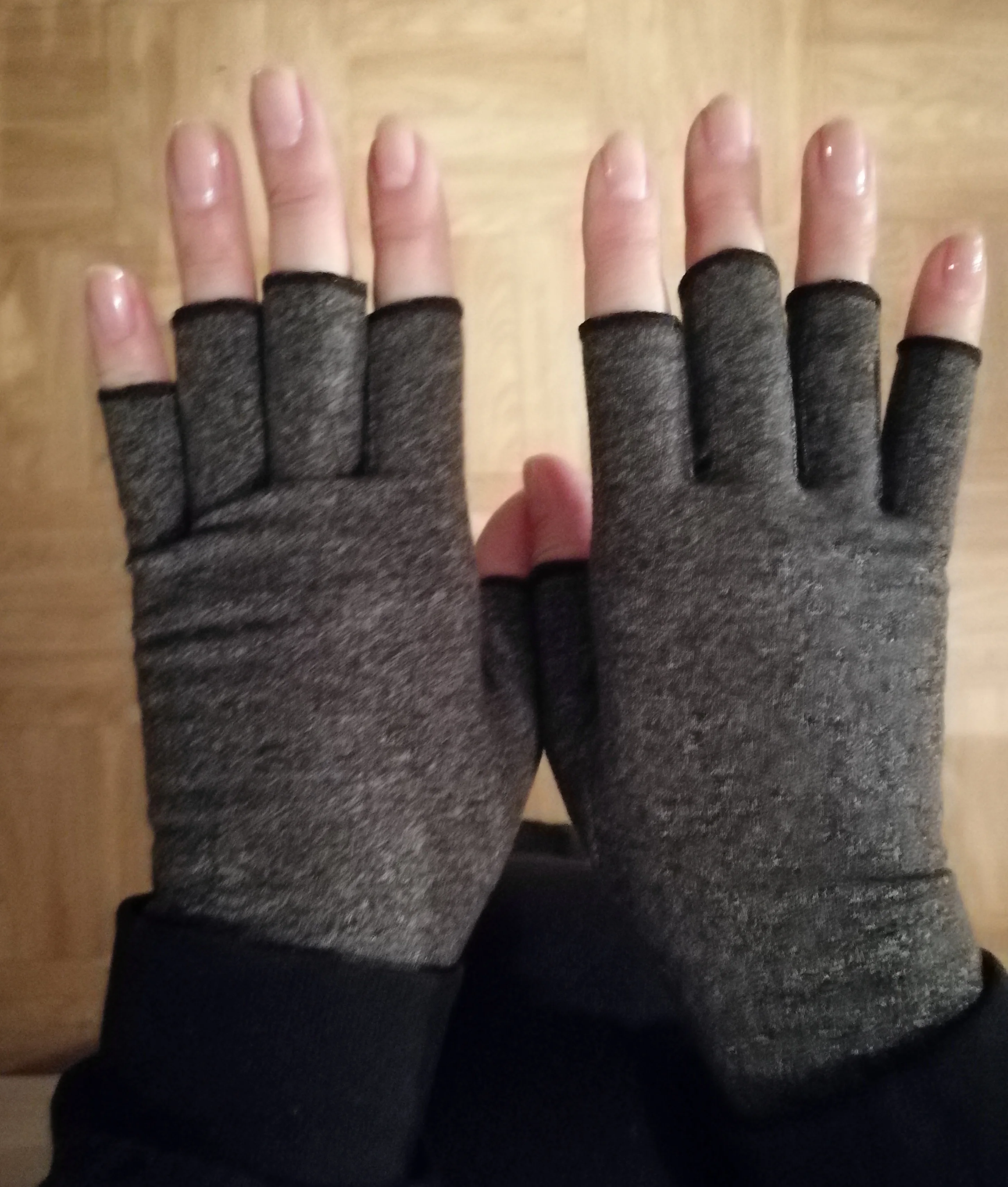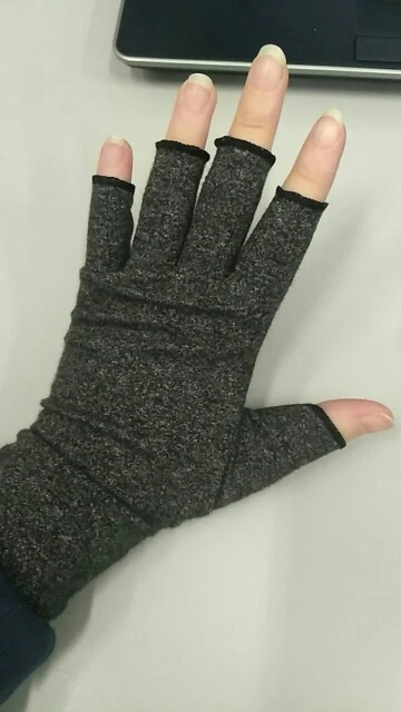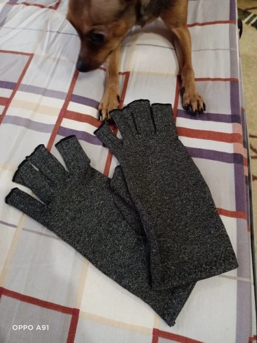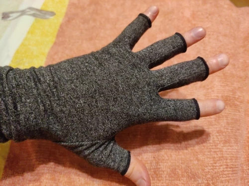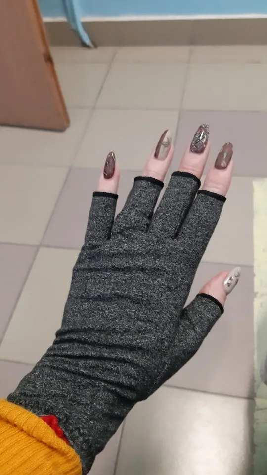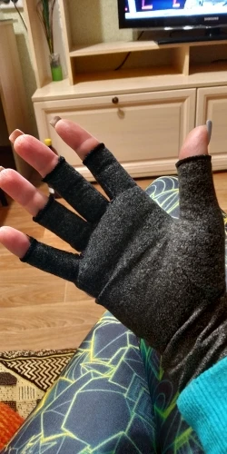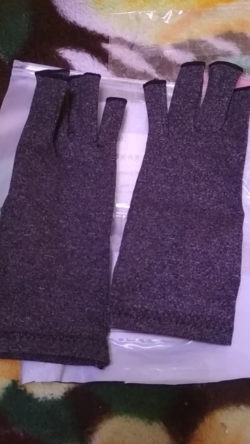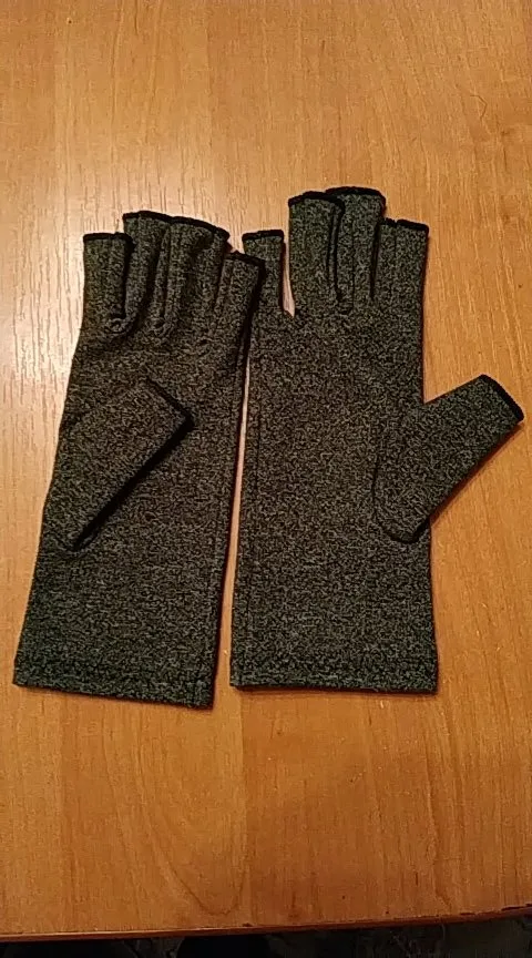 обычные тряпичные перчатки. из тонкой ткани, похожей на трикотаж. компрессия есть,но мне кажется,что она создаётся за счёт того,что перчатки чуть меньше реального размера. не знаю, чем именно они могут помочь при артрите. однако, в быту пригодиться могут