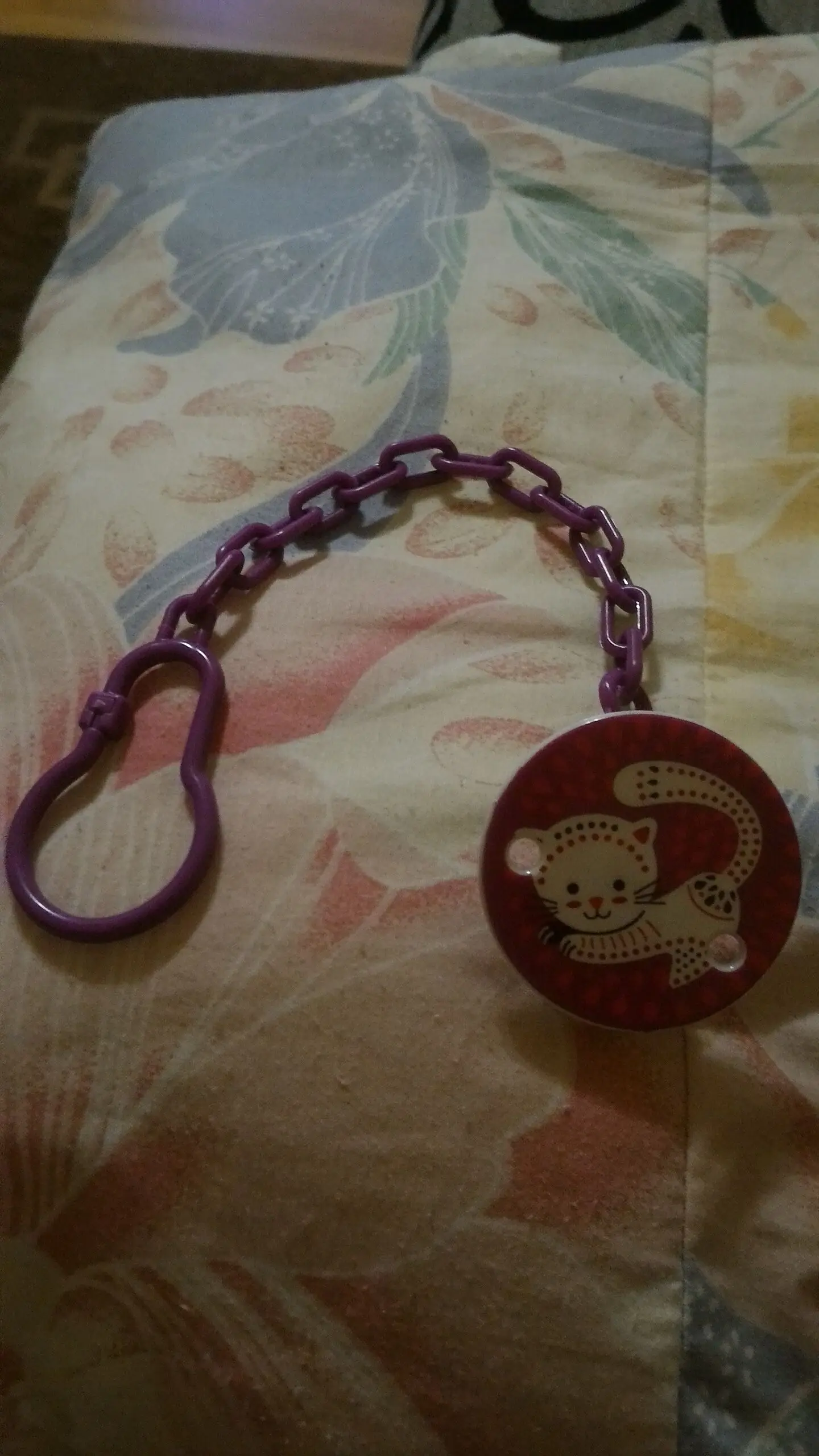 Прищепочка крепко фиксируется на одежде. Вроде всё безопасно, прищимить пальчик случайно думаю не получится Лёгенькая, не слишком длинная и не короткая цепочка. Самое то удобнее наверное будет для сосочек с кольцом.