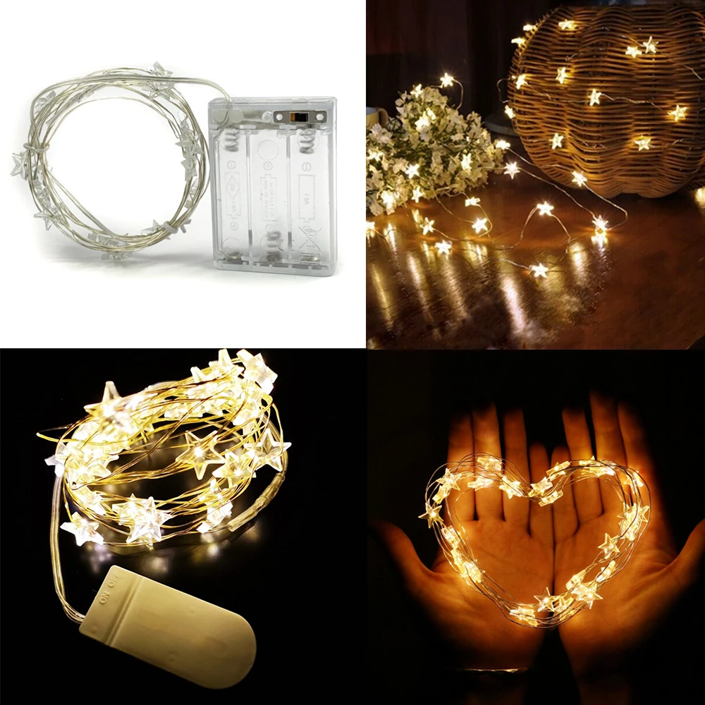 Светодиодный светильник в форме звезды, теплый белый, AA, батарейный отсек, сказочный светильник на пуговицах, для праздника, вечеринки, Рождества, сказочный светильник, 2 м, 4 м