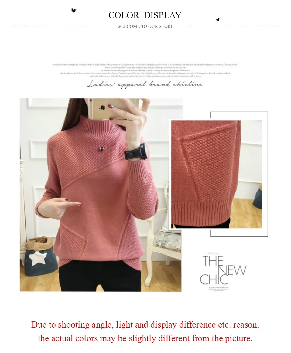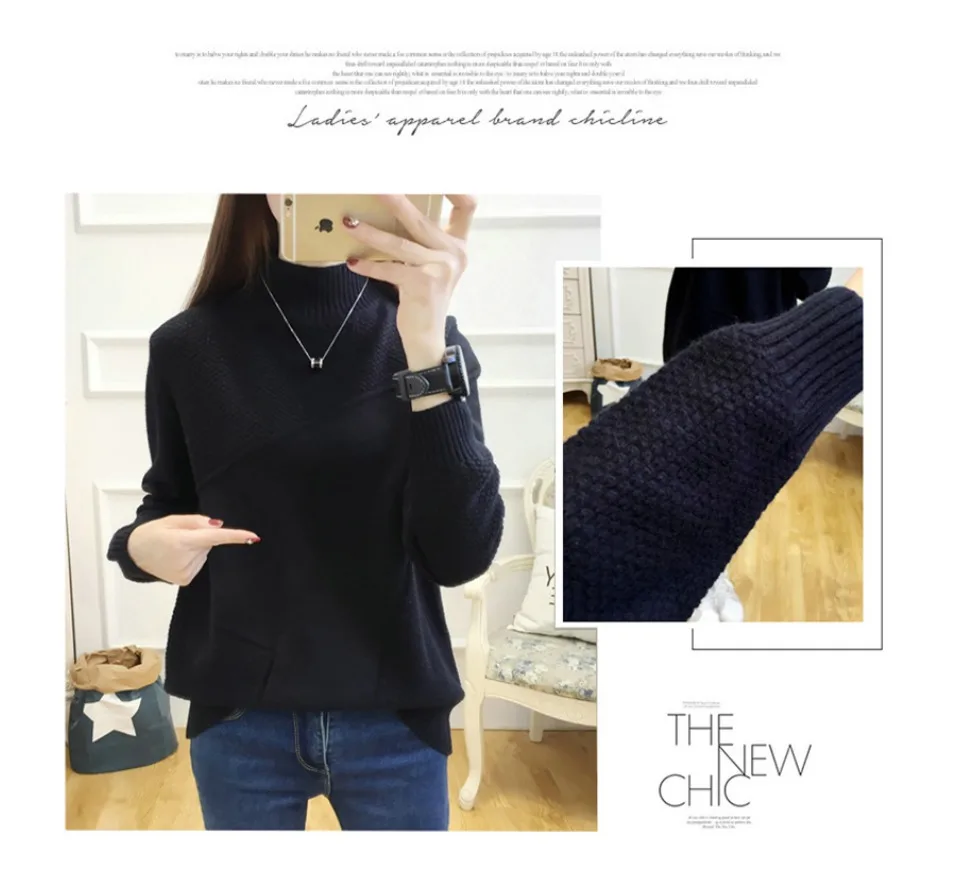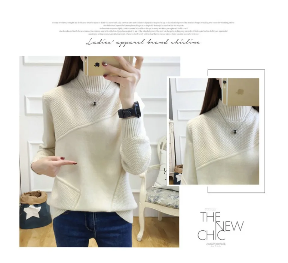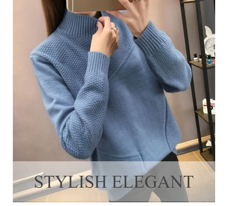 Свитер женский осенне-зимний, вязаный, с высоким воротом