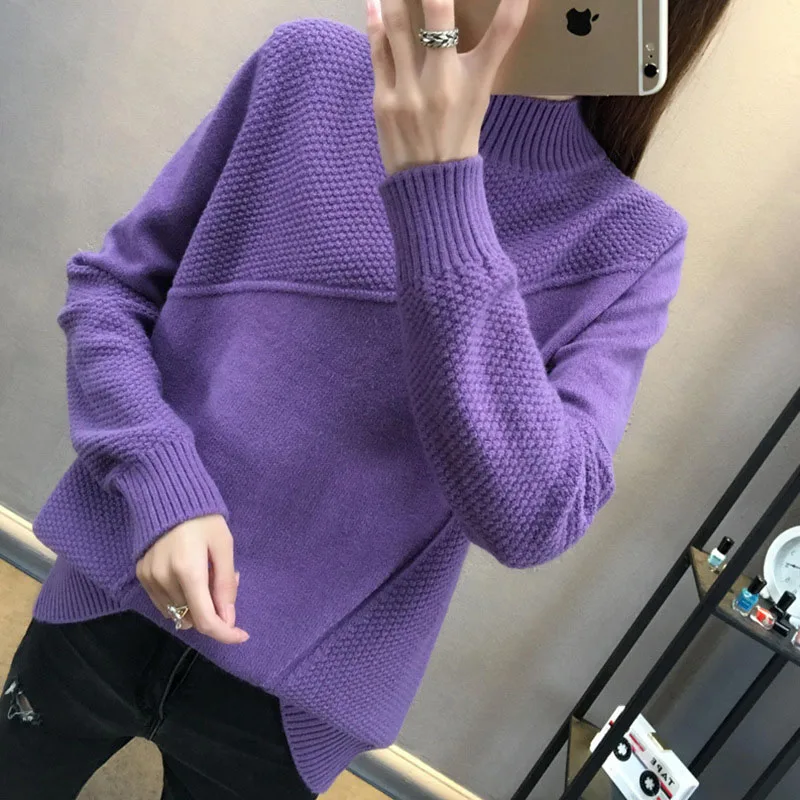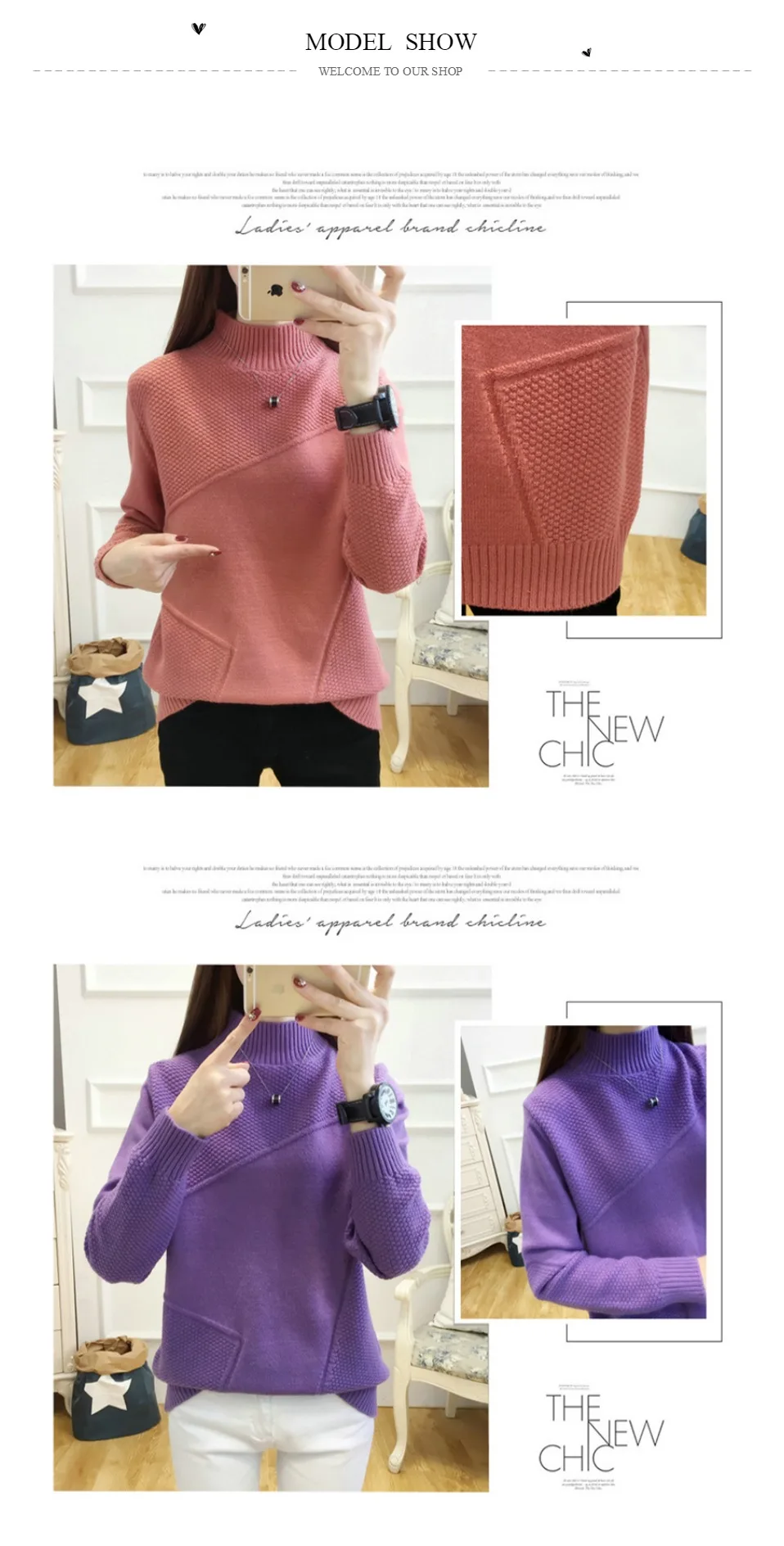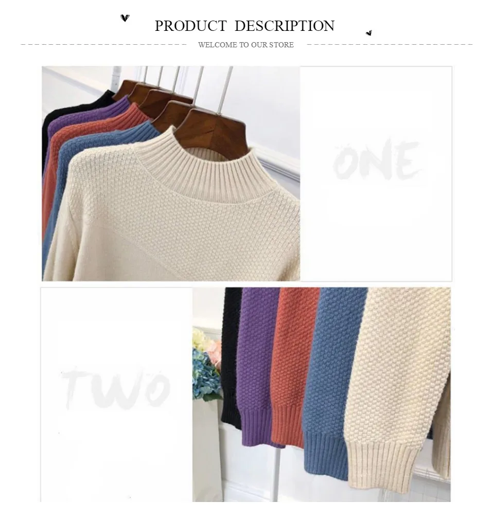 Свитер женский осенне-зимний, вязаный, с высоким воротом
