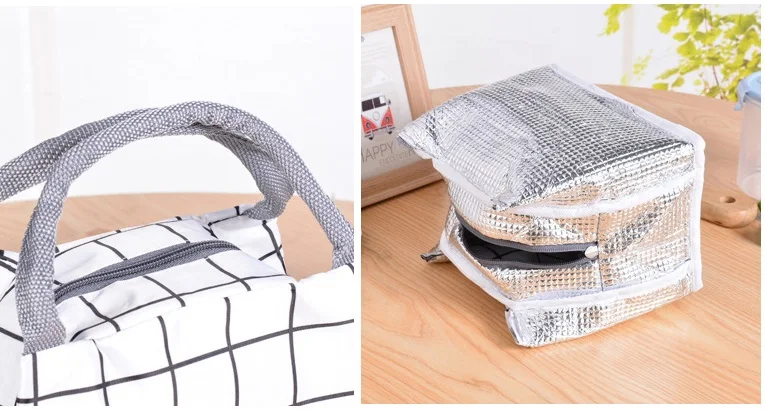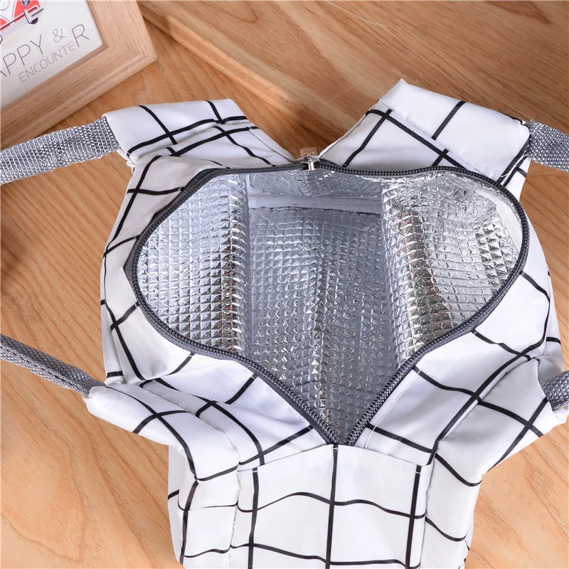 Портативные водонепроницаемые сумки для обедов на молнии, женские термосумки с принтом в решетку, Студенческая коробка для завтрака, сумка-холодильник для офиса, школы, пикника, Bolso