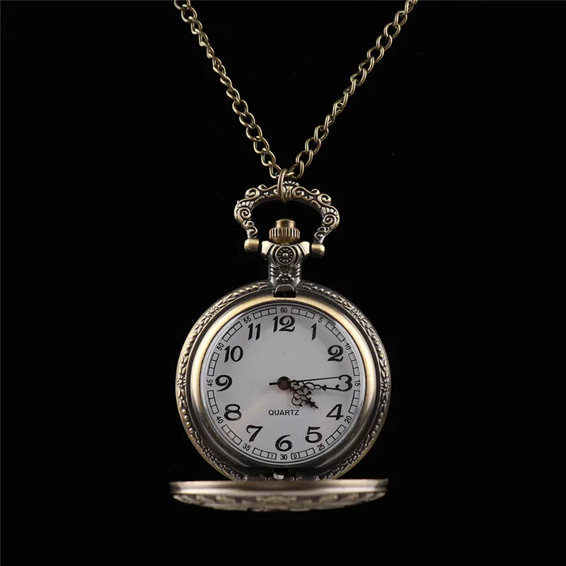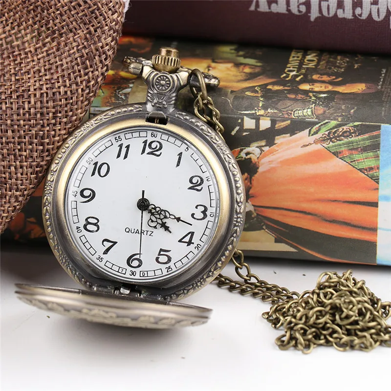 Бронзовые кварцевые карманные часы с тематикой Алисы в стране чудес, Лидер продаж, винтажные часы на цепочке, время в кармане, подарок на Рождество и день рождения