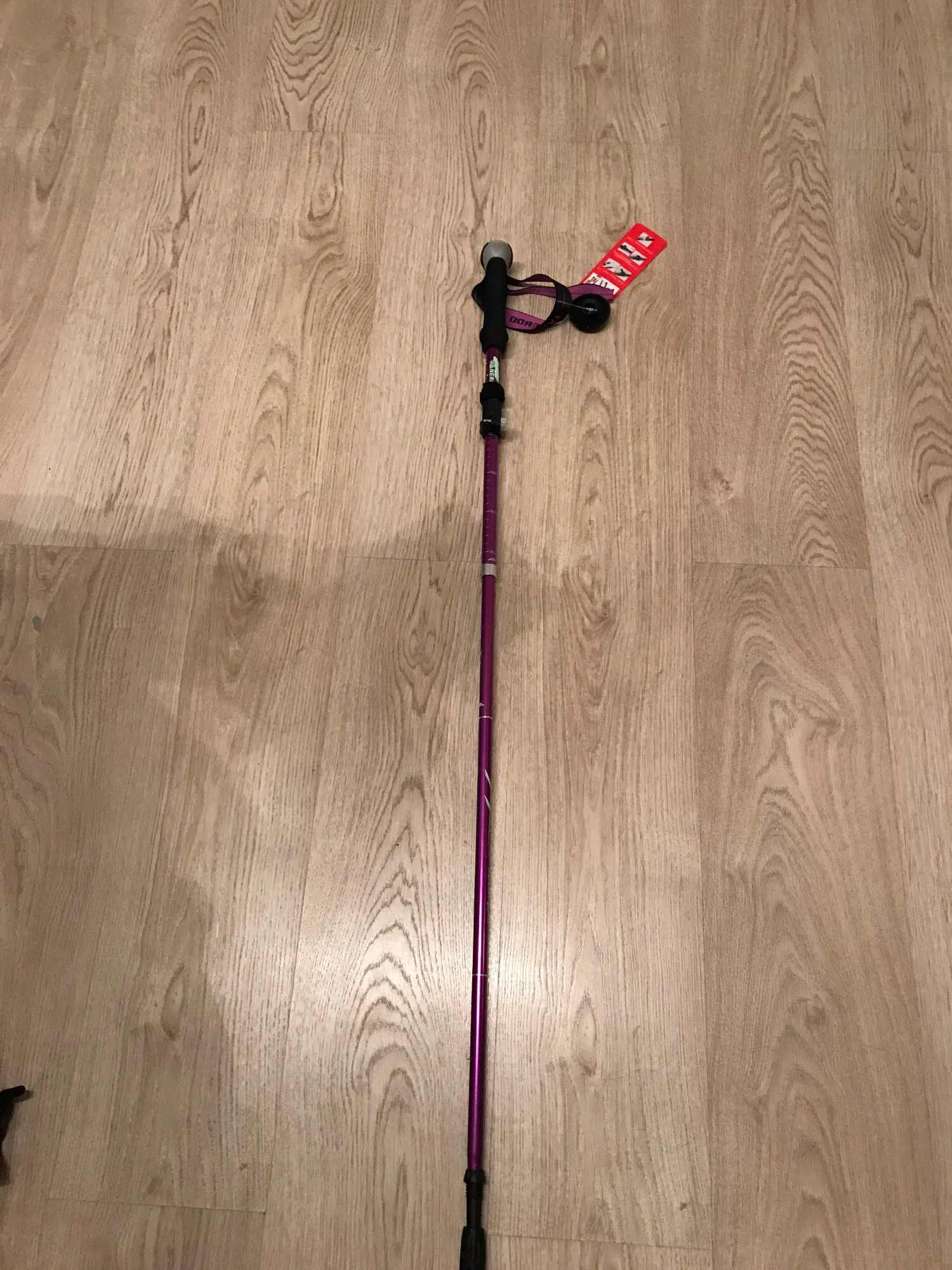 Отличная легкая палка. Все точно как в описании, в сложенном виде - 30 см, можно убрать в небольшой рюкзачок или сумку. Очень удобно то, что палка легко и быстро раскладывается/складывается. Палка пригодится в случаях, когда часть пути надо идти без палок, чтобы руки были свободны, но чтобы убирать и доставать палку можно было быстро. Верх ручки - прорезиненный, чуть упругий материал, и удобная форма - можно опираться ладонью при спуске. Хороший чехол, достаточно широкий, чтобы легко вытащить палку. Сделано качественно. Рекомендую к покупке.