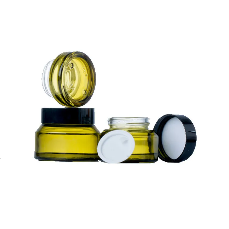 Пустой флакон 15 г30 г50 г, янтарно-зеленый стеклянный, многоразовый, бутылки кувшин для косметики, дорожный, крем-лосьон для лица флаконов, косметические контейнеры, 1 шт.