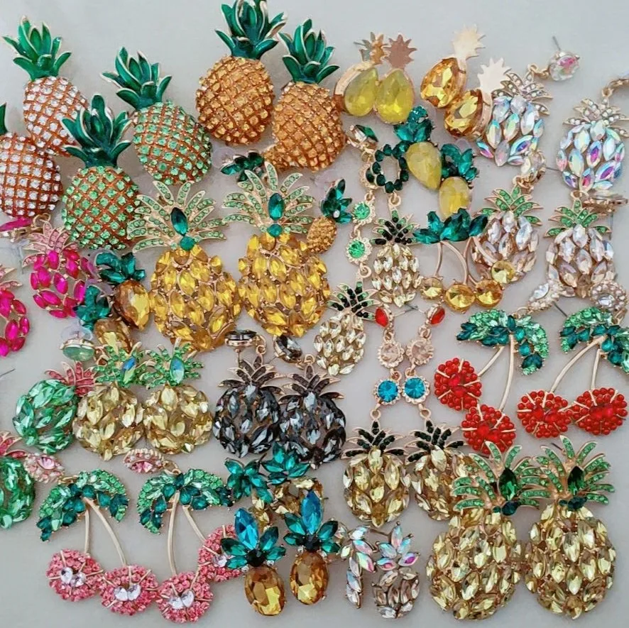 Модные серьги-подвески в виде ананаса с кристаллами для женщин 2019, эффектные серьги, модные украшения, бижутерия