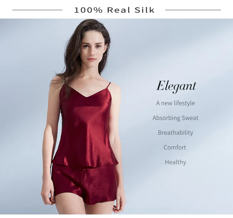 Женские пижамные комплекты из 100% натурального шелка, пикантная Пижама, женская одежда для сна, топ + шорты, костюм, пижама, женская короткая ночная одежда, домашняя одежда