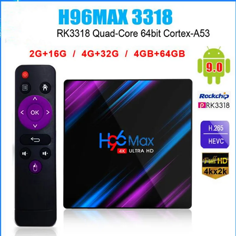 Медиаплеер H96 MAX 4K, Android 9,0, приставка для Smart TV, четырехъядерный процессор RK3318, поддержка 3D, HDMI, IP TV, Netflix, Youtube