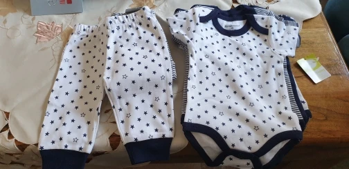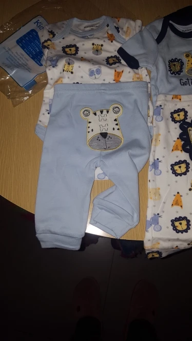 очень хорошие, хлопковые вещички. заказывали размер на 12 месяцев - но подойдет максимум на 4-5 месяца , но мы заказывали заранее (в 2 месяца), так что успеем поэксплуатировать
