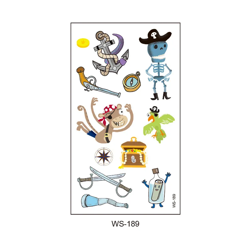10 видов детских мультяшных пиратских татуировок, временные наклейк...