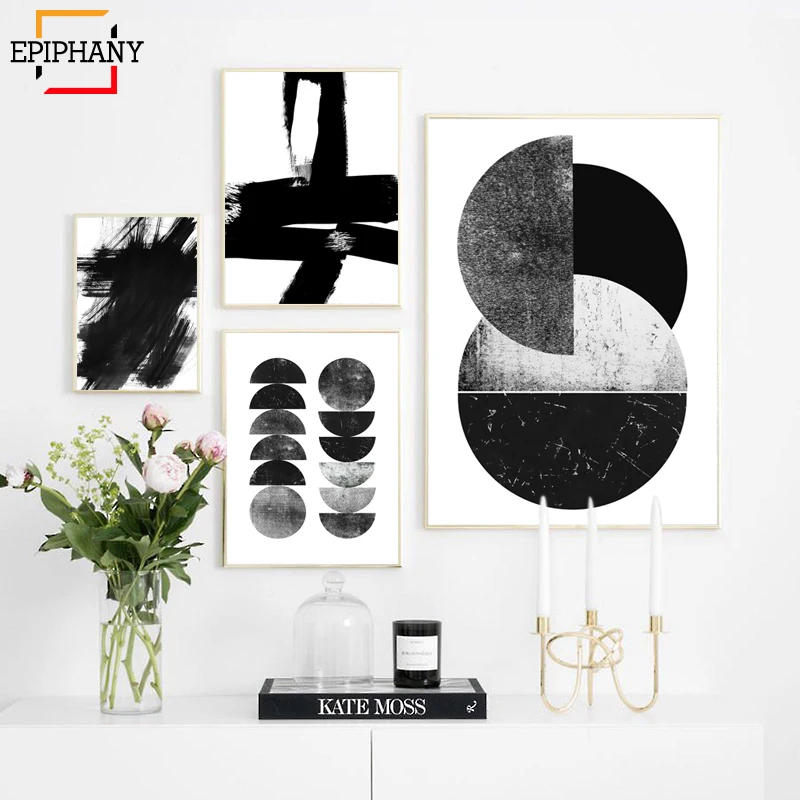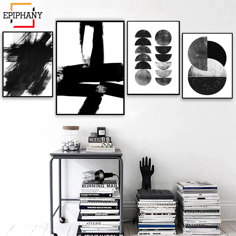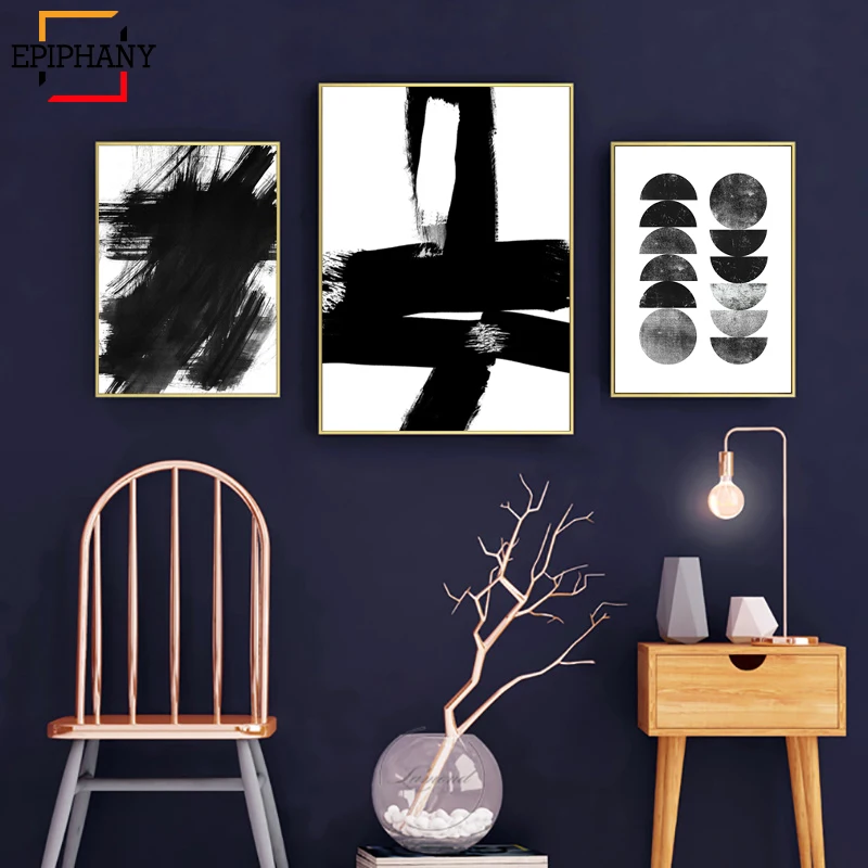 Абстрактный черно-белый художественный принт, плакат в скандинавском стиле, акварельное современное минималистское полотно, Настенная картина для гостиной