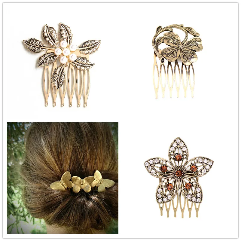 Винтажный головной убор для невесты с бабочками, гребень для волос для невесты, заколка для волос с цветами, аксессуары для волос для женщин и девочек