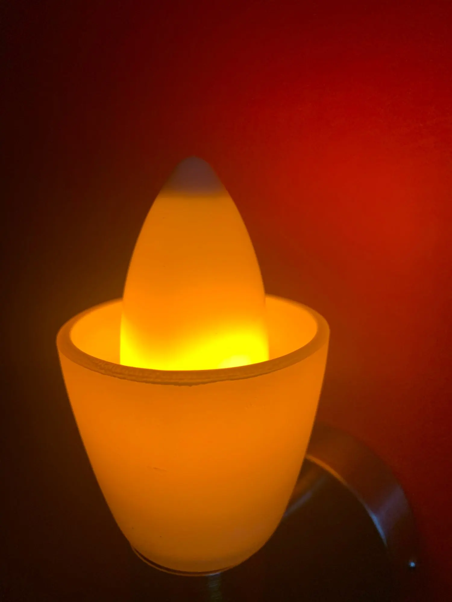 Отличная лампочка. Свет и игру огня иммитрунт натурально, создаёт ощущение уюта.