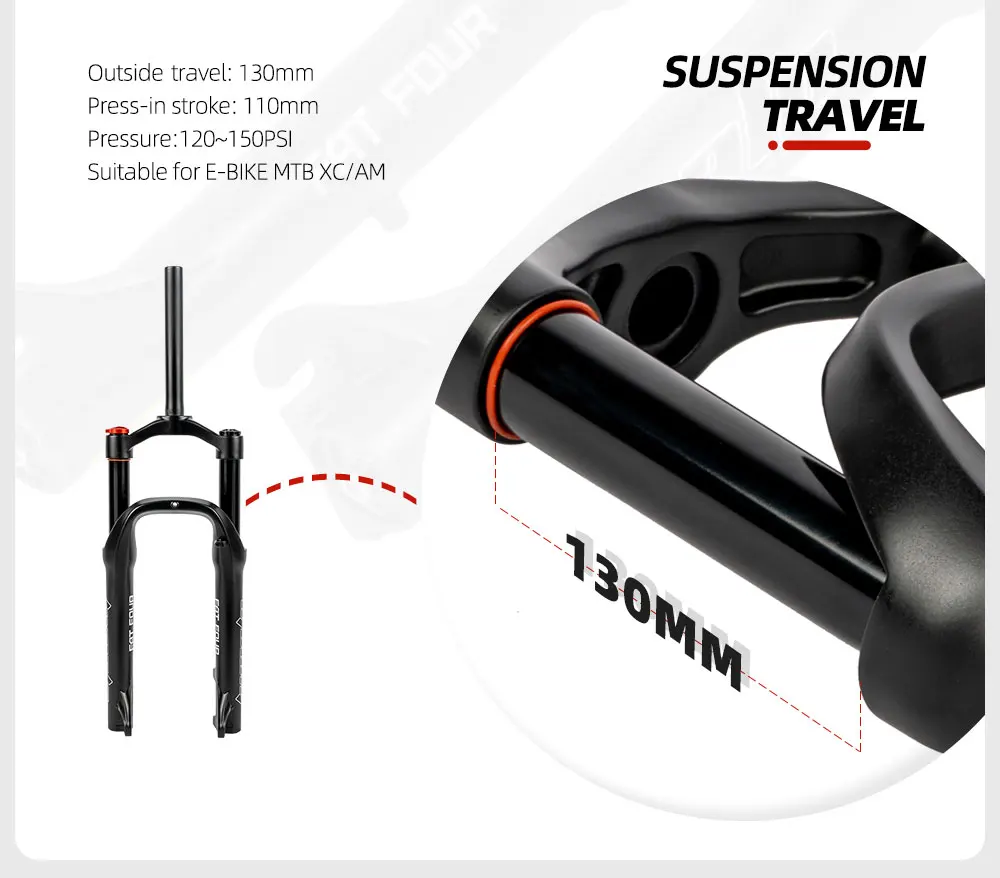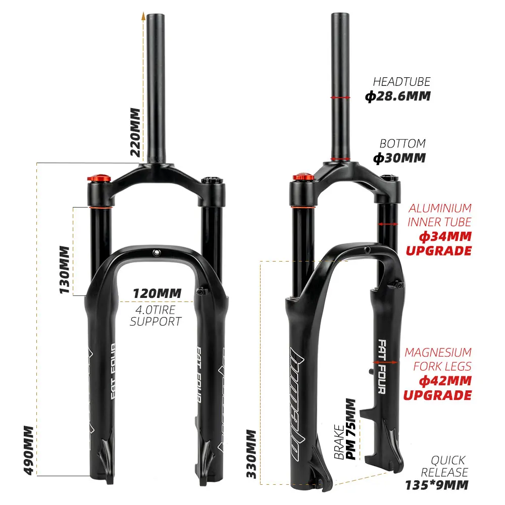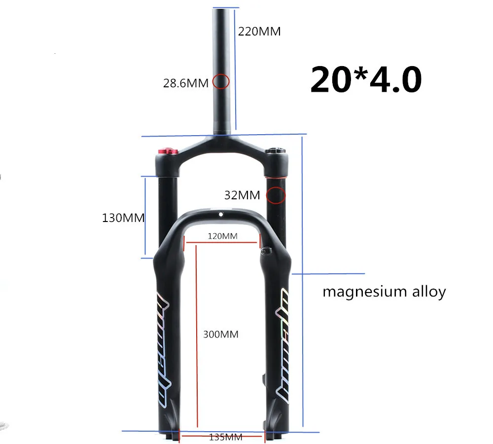 HIMALO Велосипедная вилка MTB Moutain 20 дюймов велосипедная Толстая Велосипедная вилка пневматическая газовая подвеска вилки из алюминиевого сплава для 4,0 "шины 135 мм