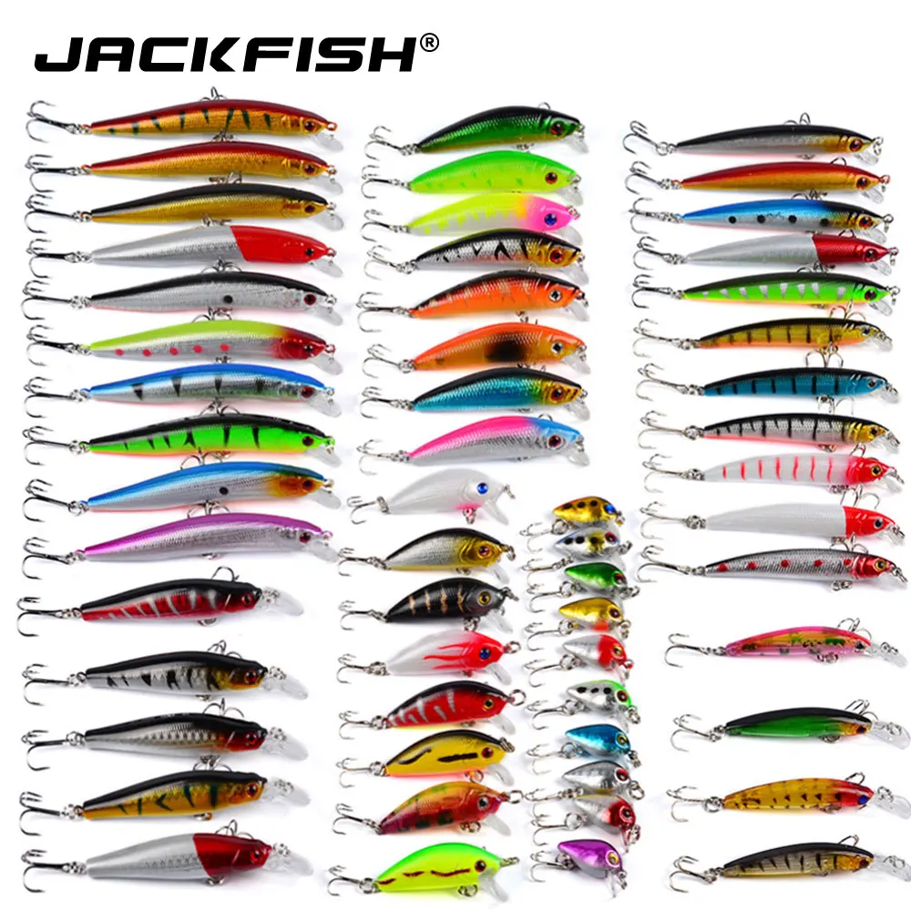 JACKFISH 56 шт.лот набор смешанных приманок для рыбной ловли, воблер, кренкбейты, свимбейт, гольян, жесткие приманки, Спиннеры, рыболовные снасти для карпа