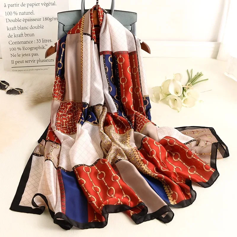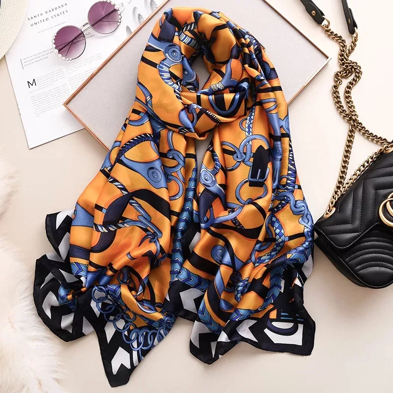 180*90 см популярный Шелковый атласный шарф с принтом Солнцезащитны...
