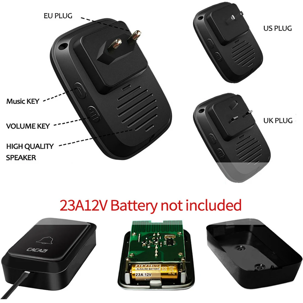 Звонок дверной CACAZI беспроводной водонепроницаемый, 12 передатчика12 приемника