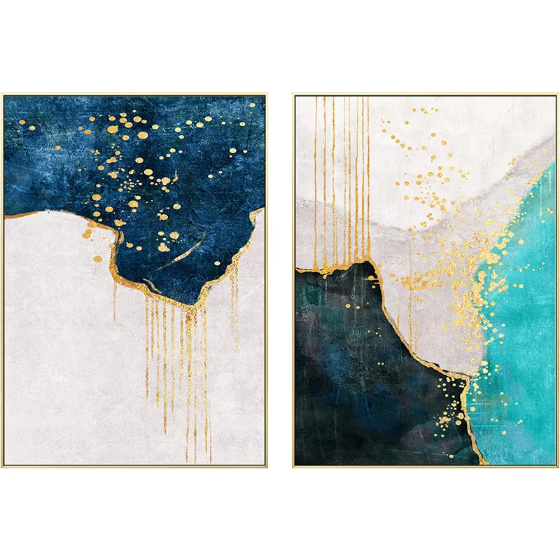 Современная Алмазная картина EECAMAIL из двух частей, алмазная вышивка, золотой абстрактный узор, наклейки для гостиной