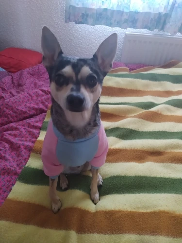 llego 3 dias mas tarde de lo previsto pero todo bien es un chiuaua tamaño grande y lleva XL